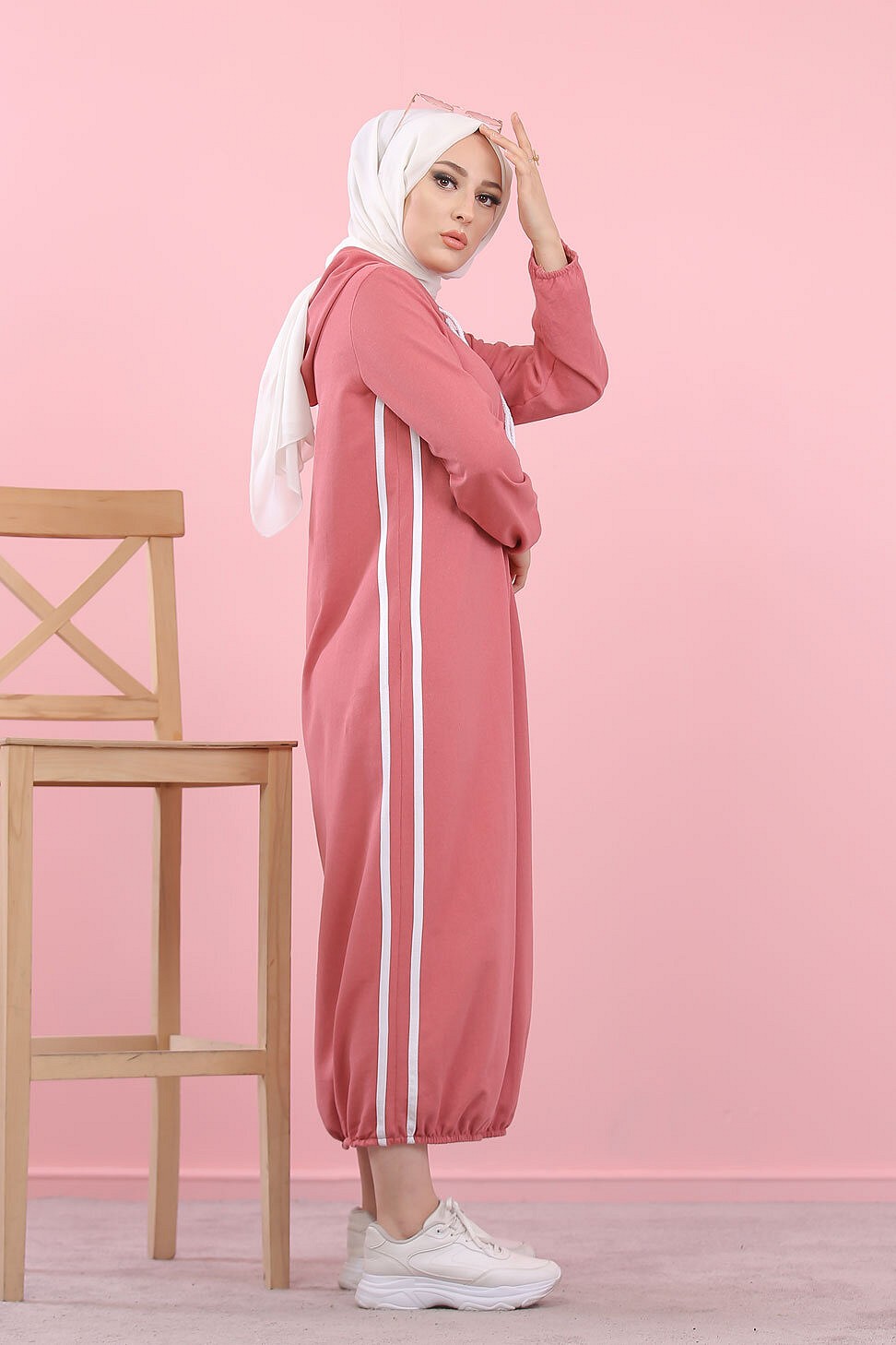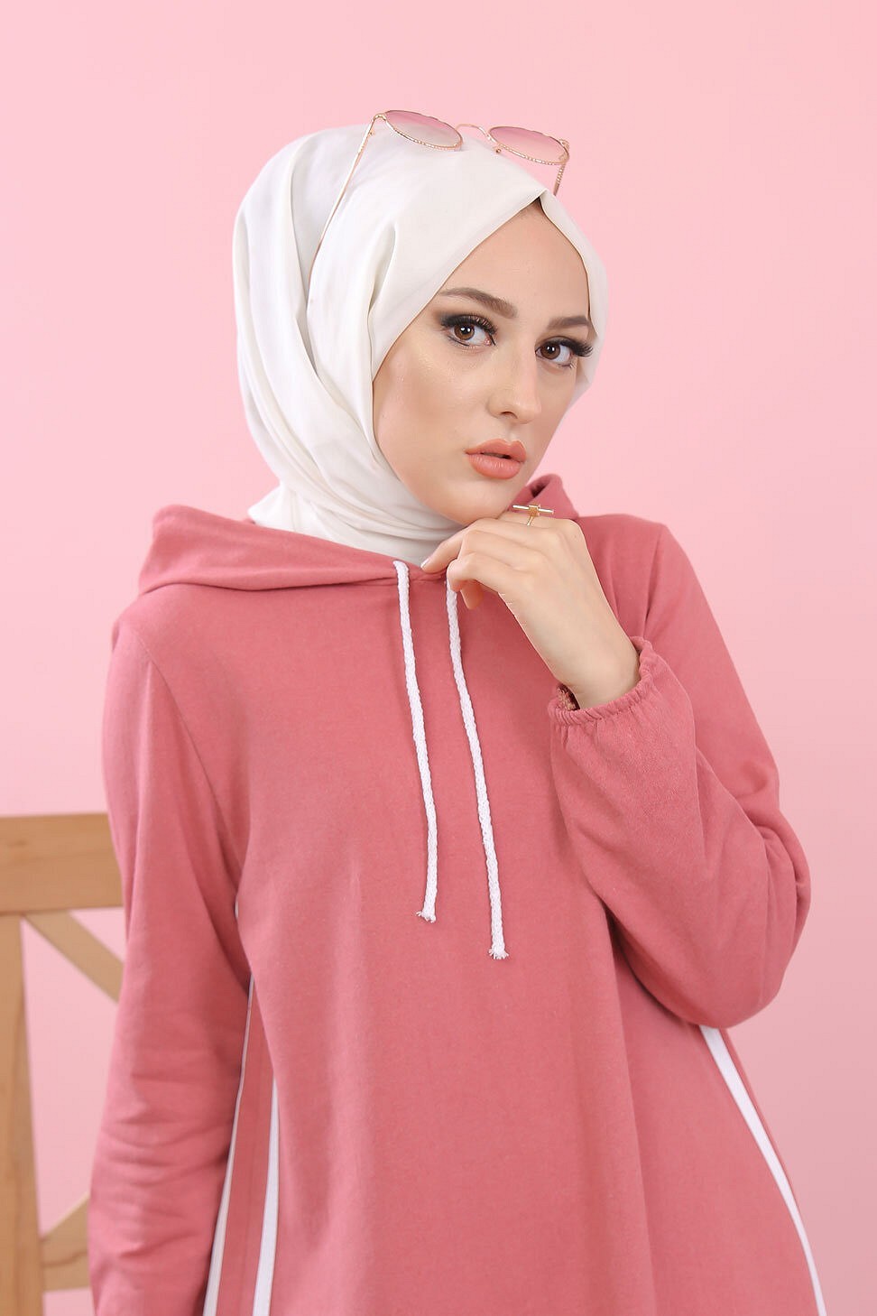 Tunique longue sport a capuche (Vetement moderne pour femme voilee) - Couleur Rose