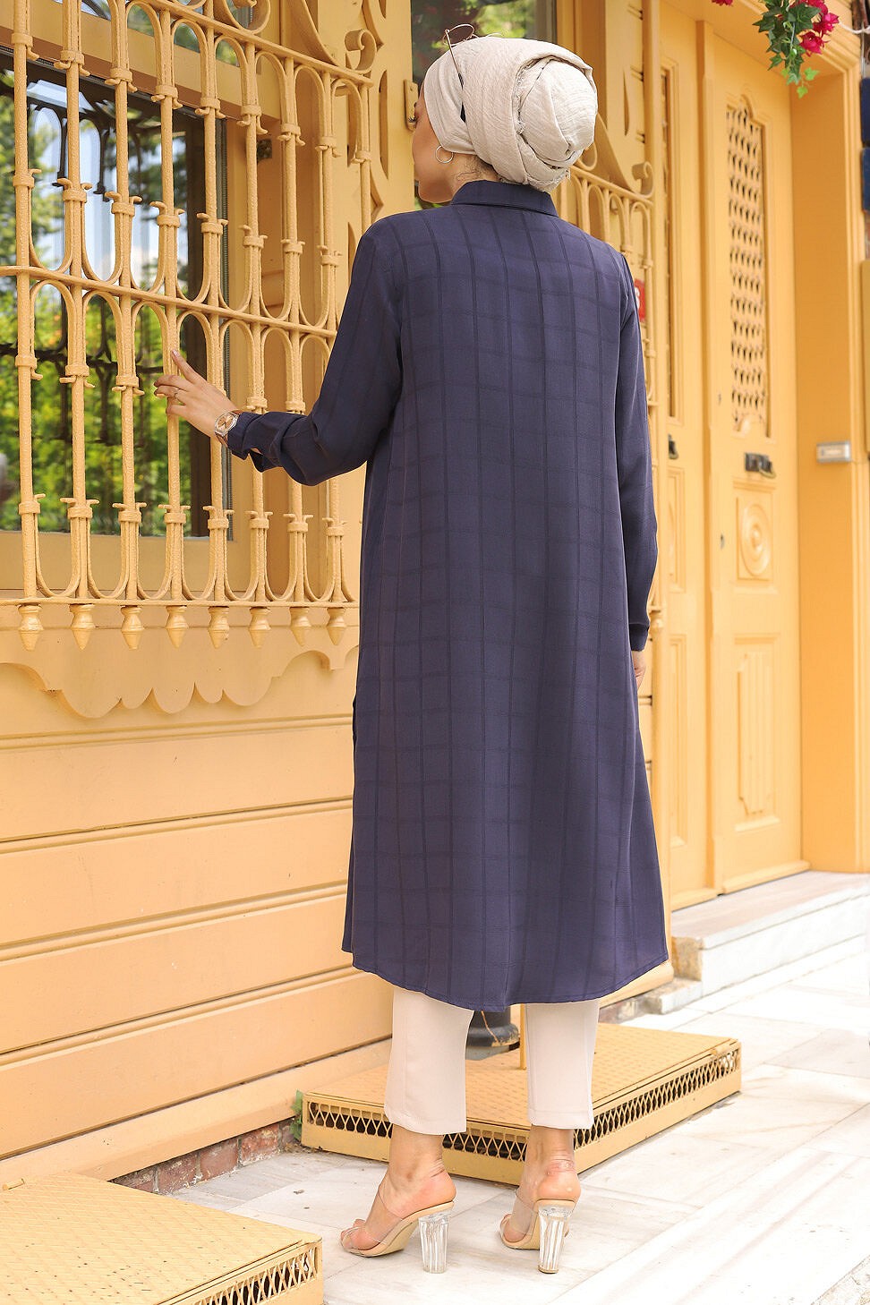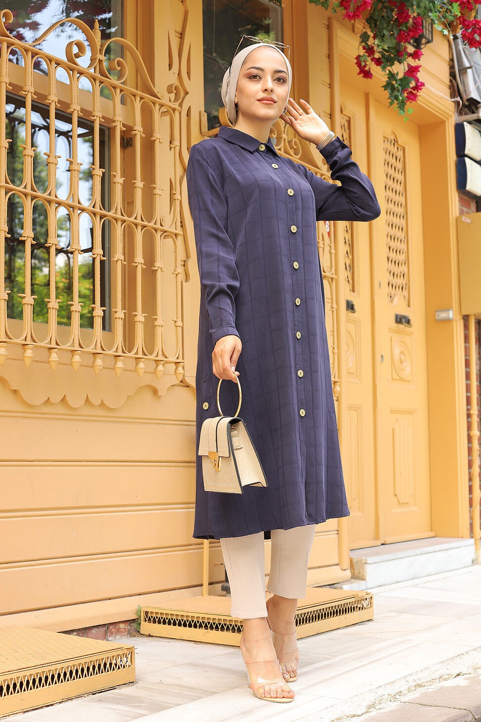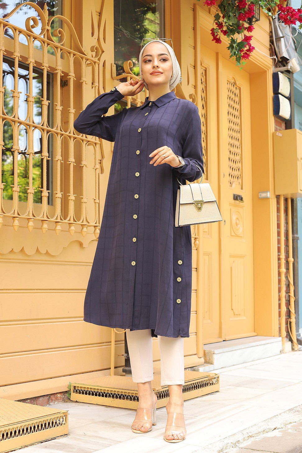 Chemise longue casual boutonnée - Couleur bleu marine Vetement & Accessoire
