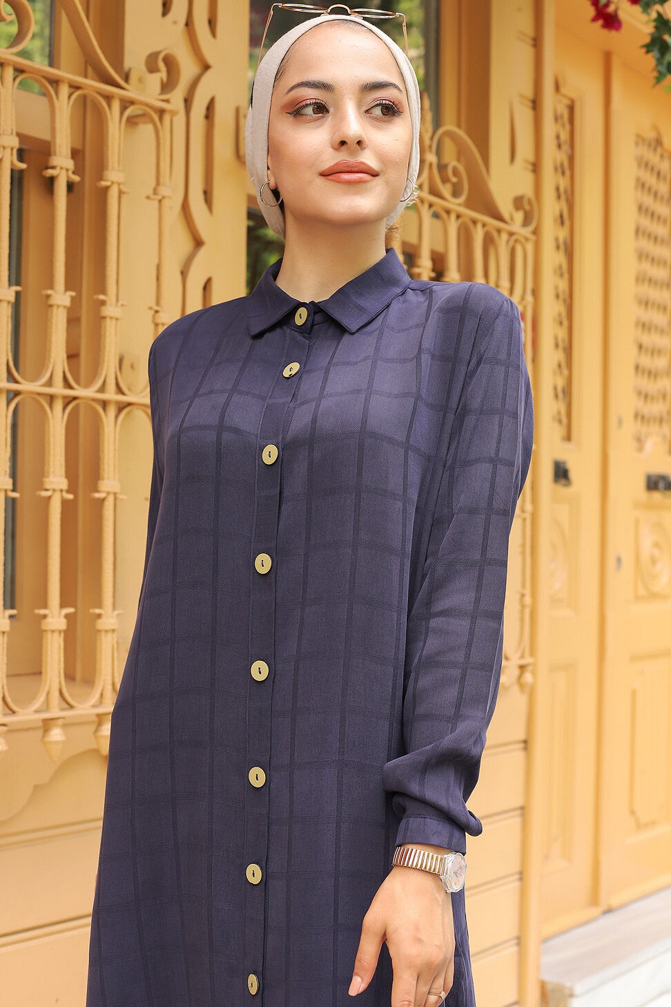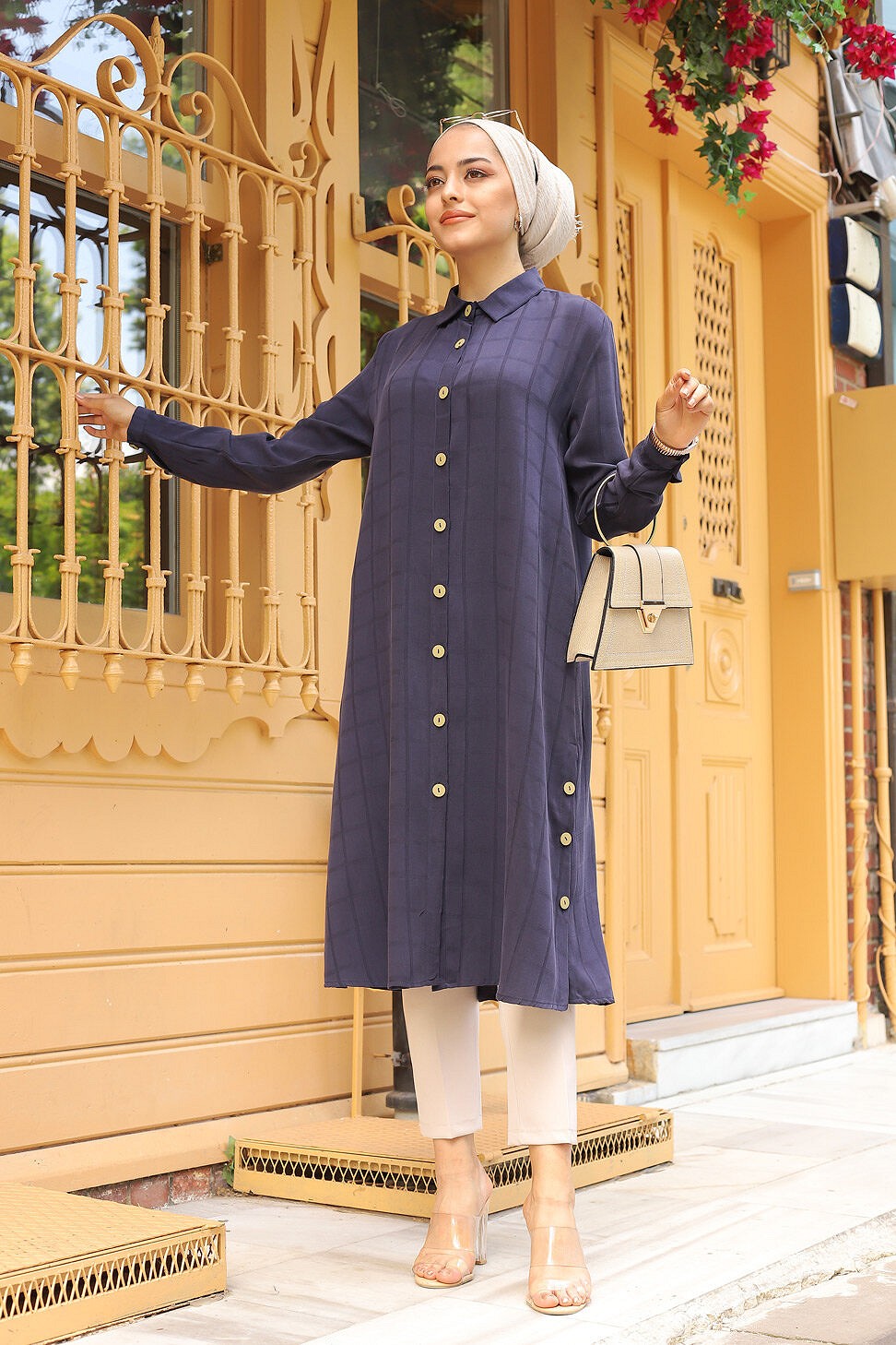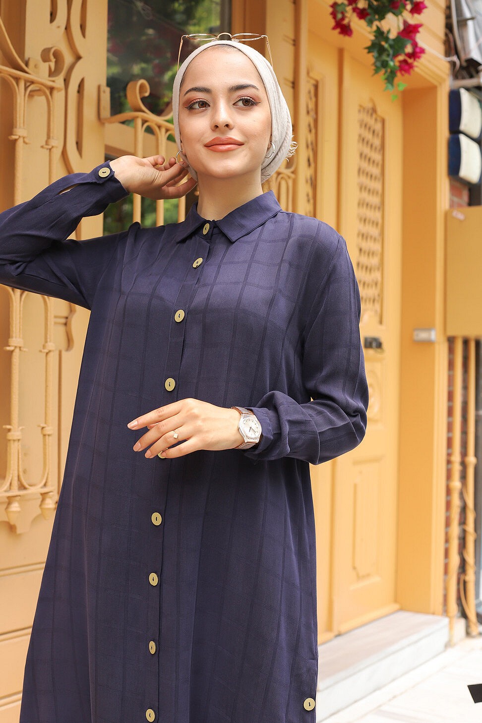Chemise longue casual boutonnée - Couleur bleu marine Vetement & Accessoire