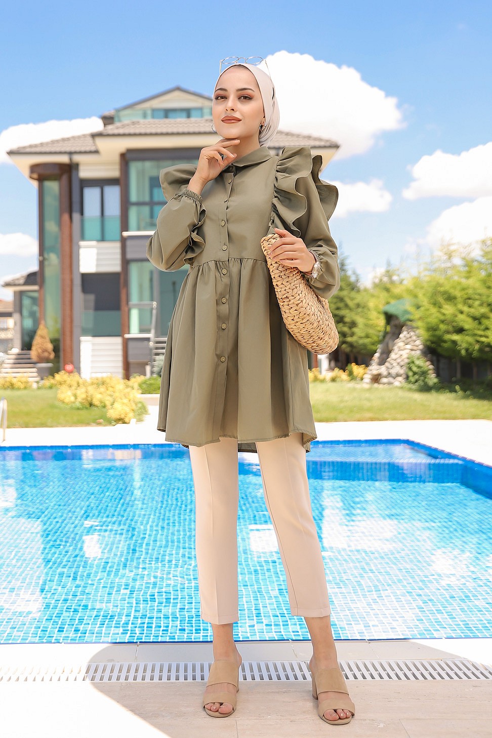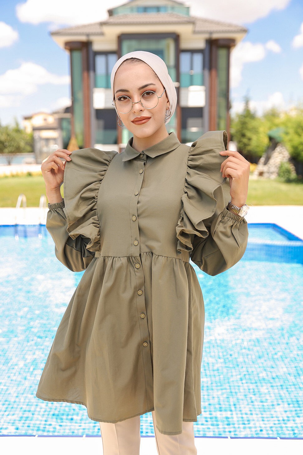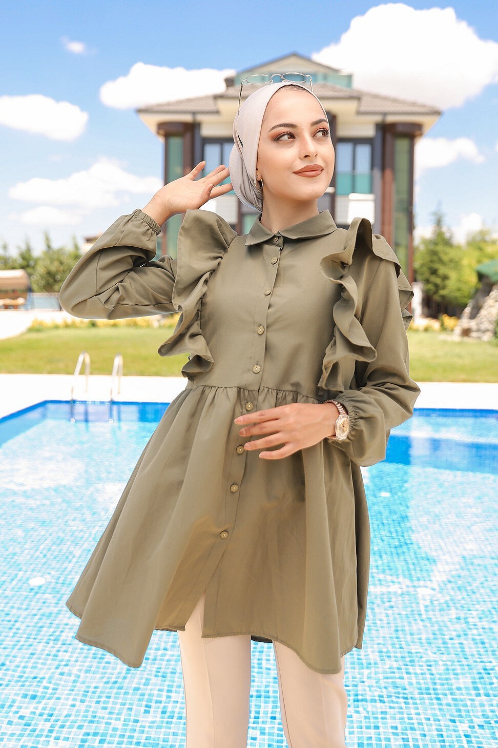 Chemise a froufrou (Vetement femme voilee moderne) - Couleur kaki