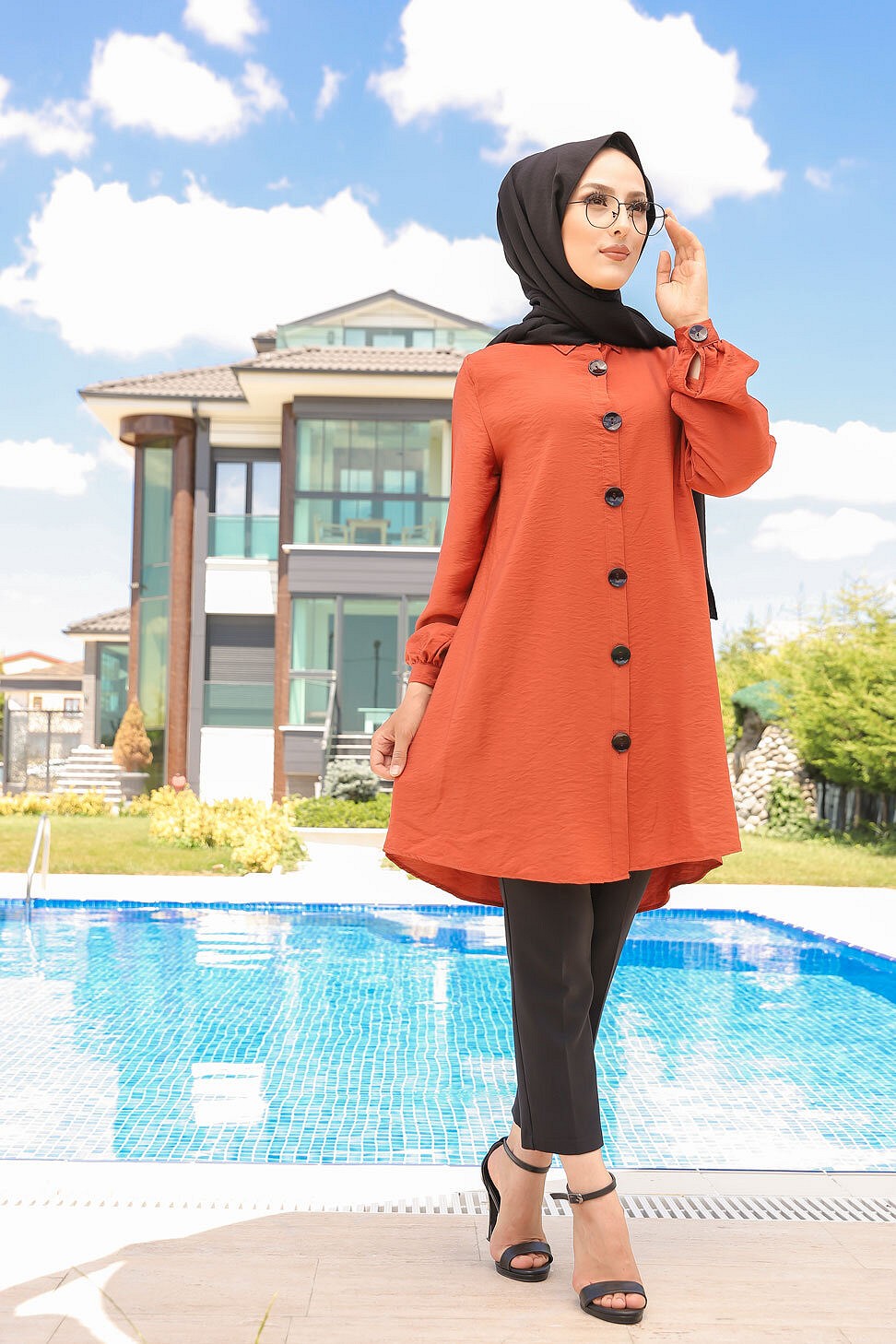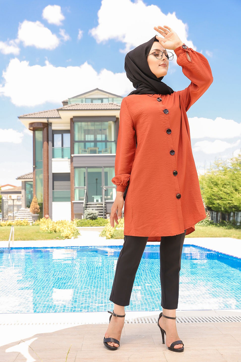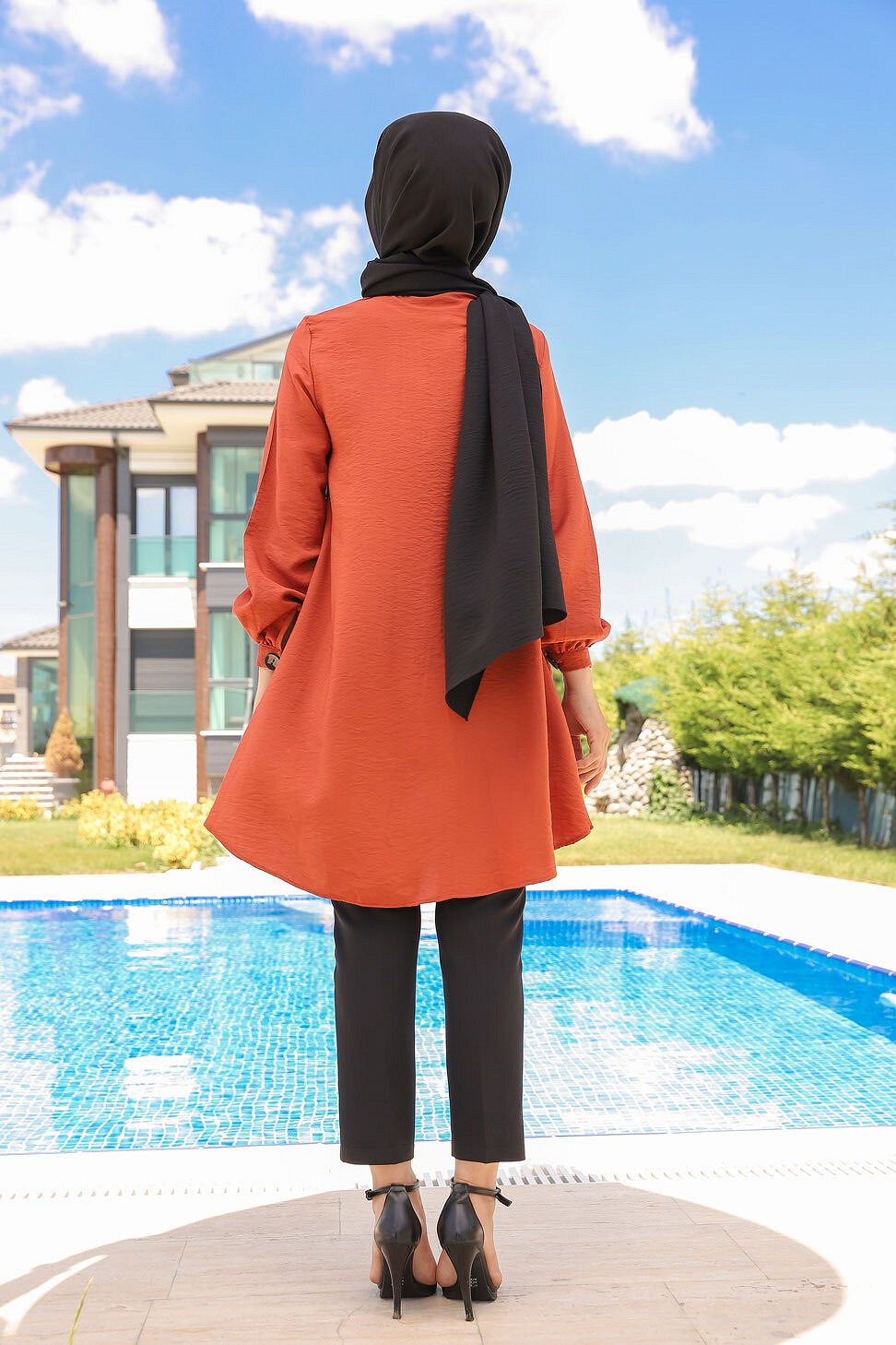 Chemise mi-longue fluide ample légèrement brillante (Vetement femme hijab) - Couleur brique Vetement & Accessoire