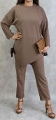 Ensemble femme 2 pièces (tunique et pantalon) avec nœuds sur les côtes - Couleur Taupe - REF. 31747 (38.00 €)
