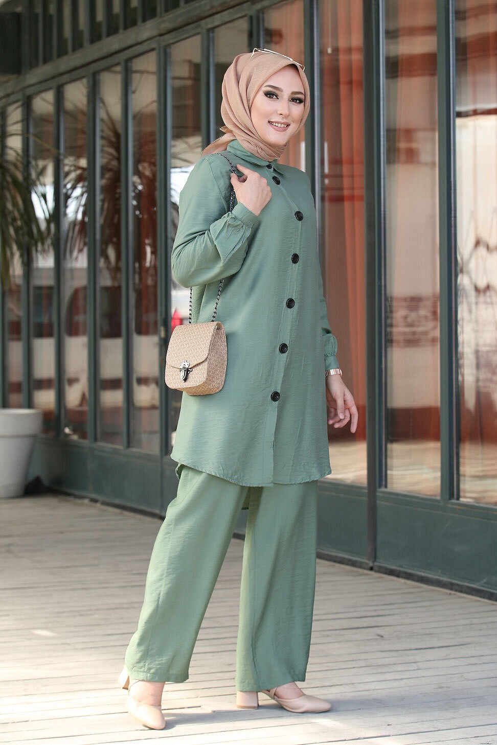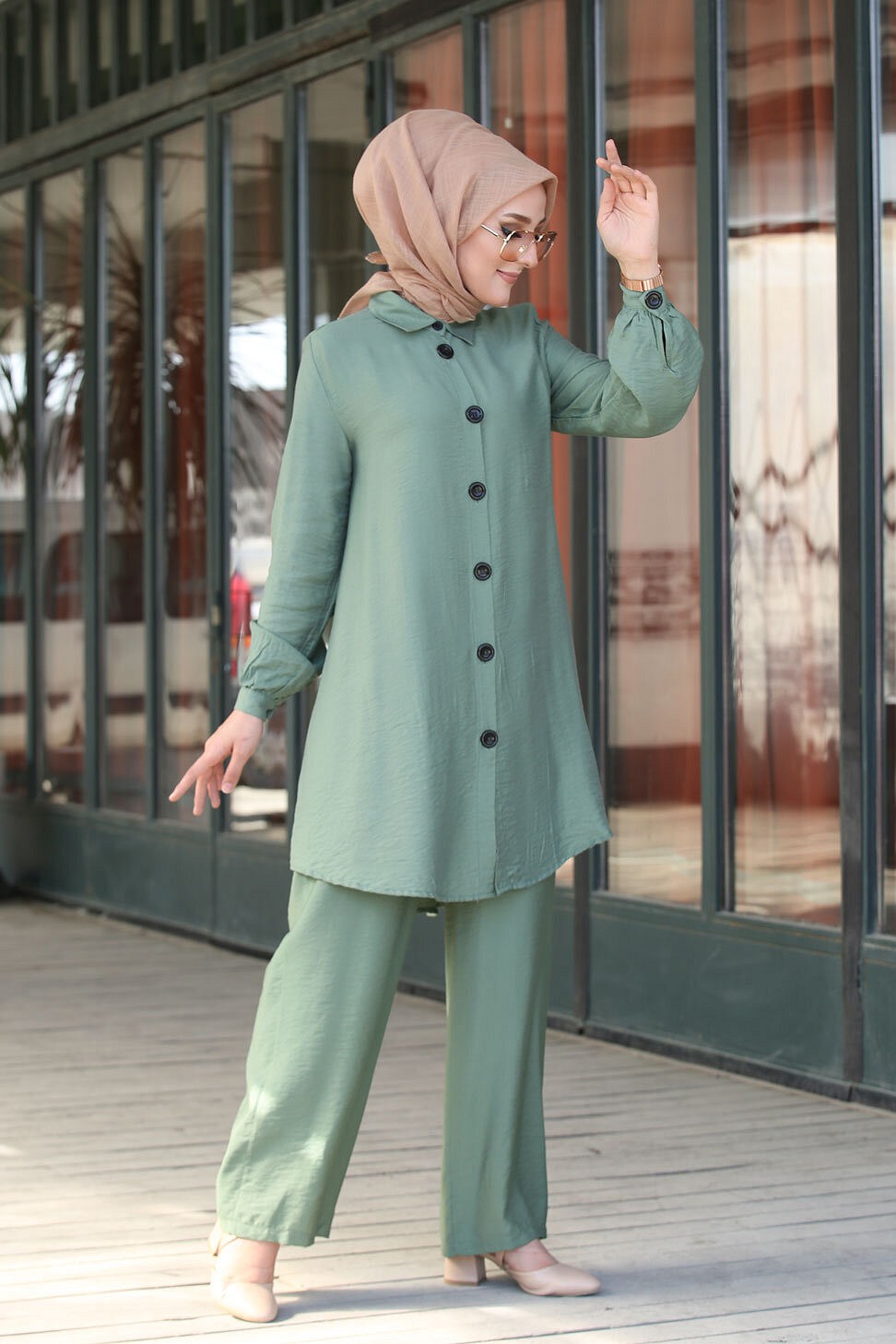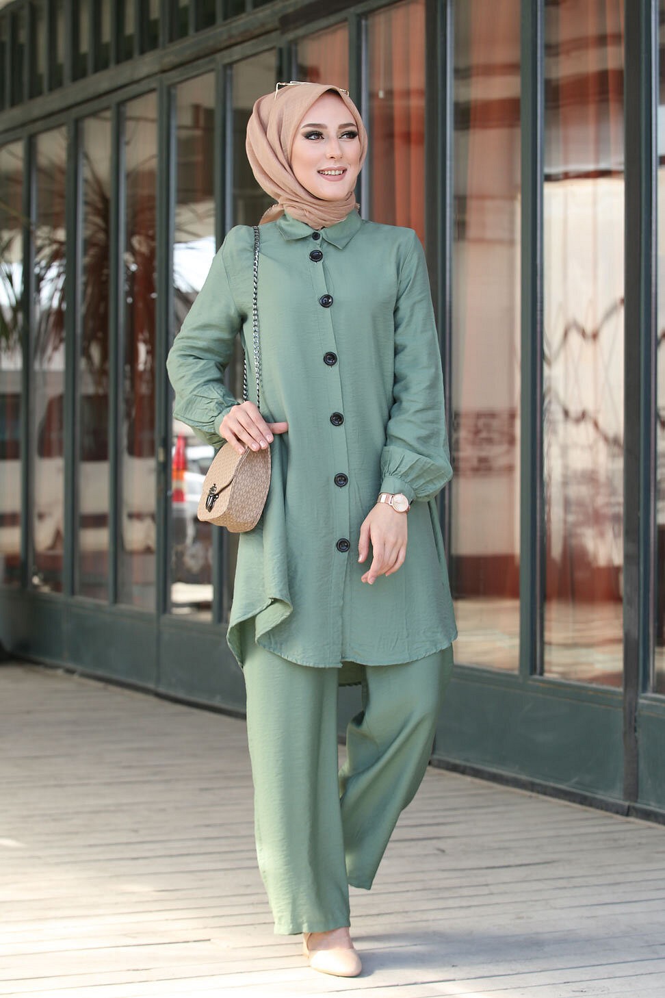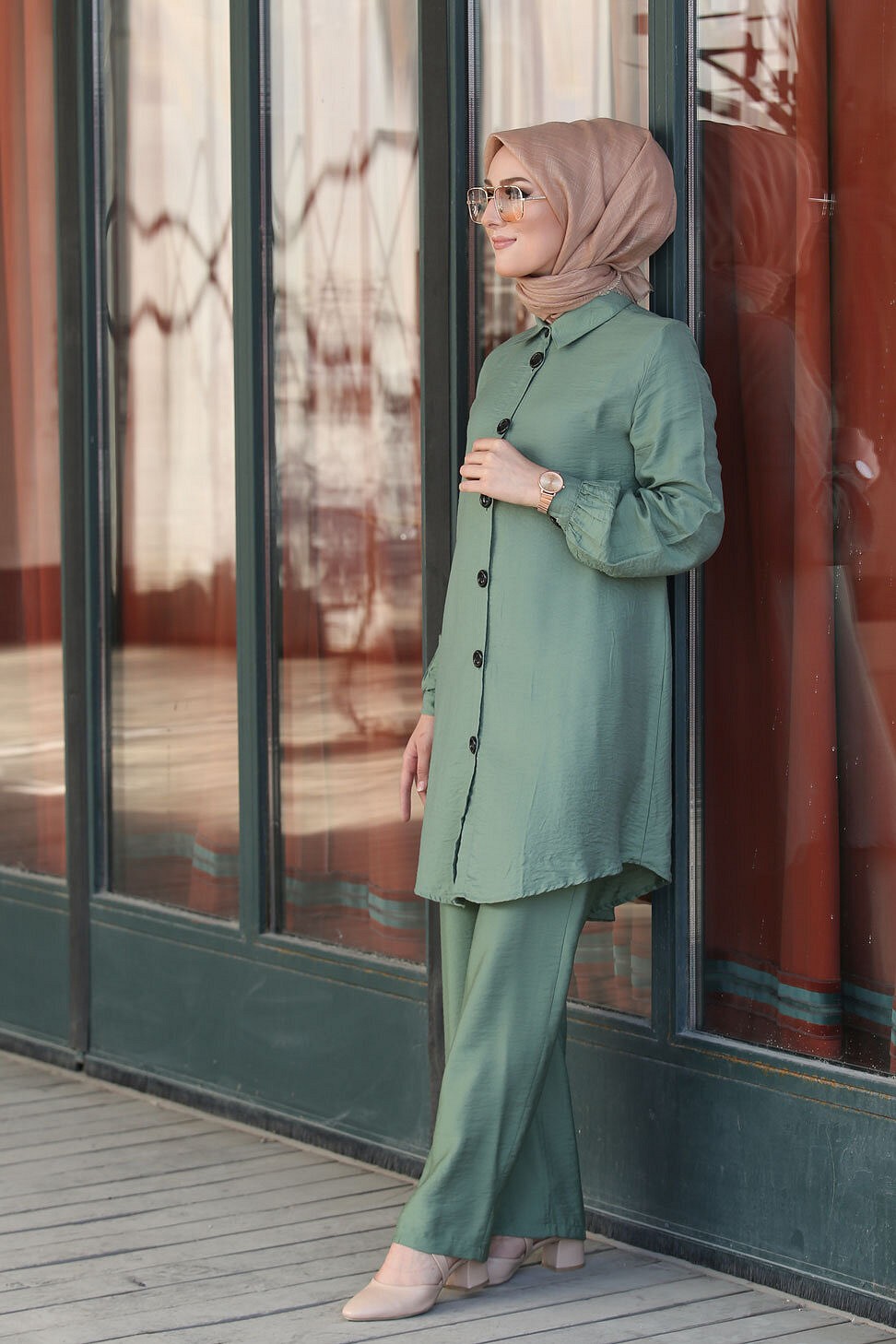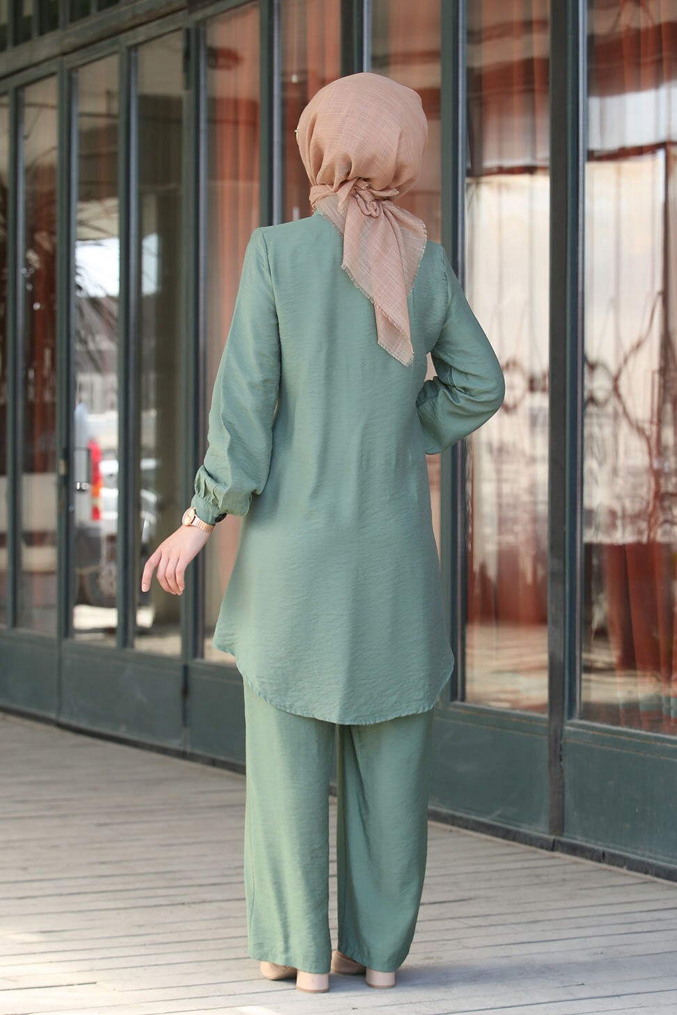 Ensemble habillé tunique et jupe (Tenue style hijab et Modest Fashion) - Couleur menthe - REF. 37134 (35.00 €)