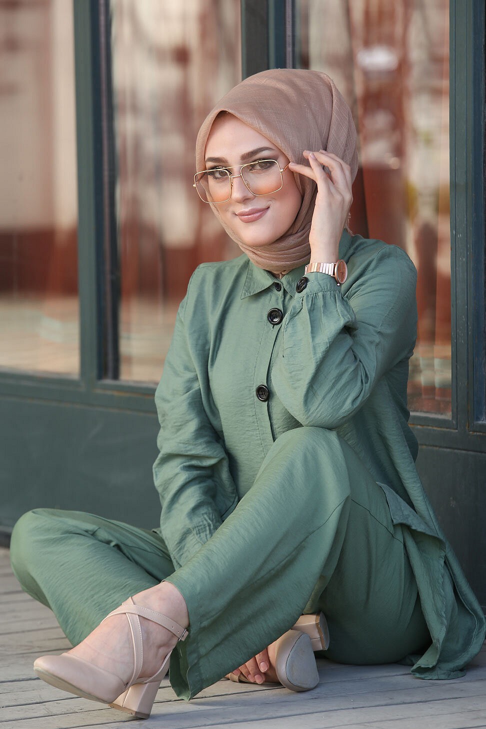Salopette moderne (Tenue Modest Fashion pour femme voilée) - Couleur kaki - REF. 33265 (24.90 €)
