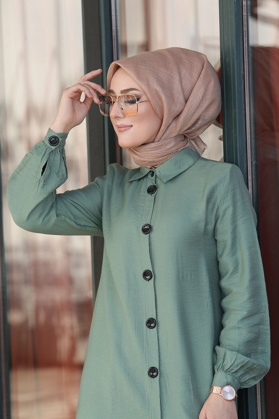 Tunique chemise boutonnée habillée (Vêtement pour femme voilée) - Couleur kaki - REF. 36344 (29.00 €)