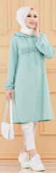 Tunique avec strass et capuche (Vêtement décontracté moderne pour jeune musulmane) - Couleur menthe - REF. 35958 (19.90 €)