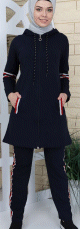 Ensemble survêtement islamique à capuche et bandes blanches pour femme voilée - Couleur bleu marine - REF. 32536 (28.00 €) - En Promotion à 20.90 €