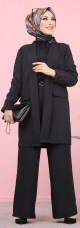 Ensemble élégant veste longue et pantalon pour femme (Tenue Hijab - Modest Fashion) - Couleur noir - REF. 32317 (35.00 €)
