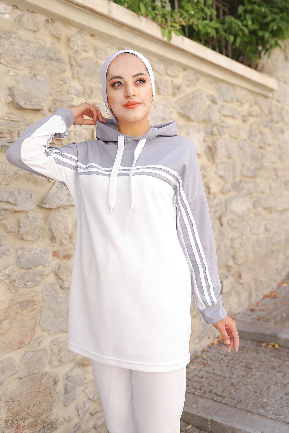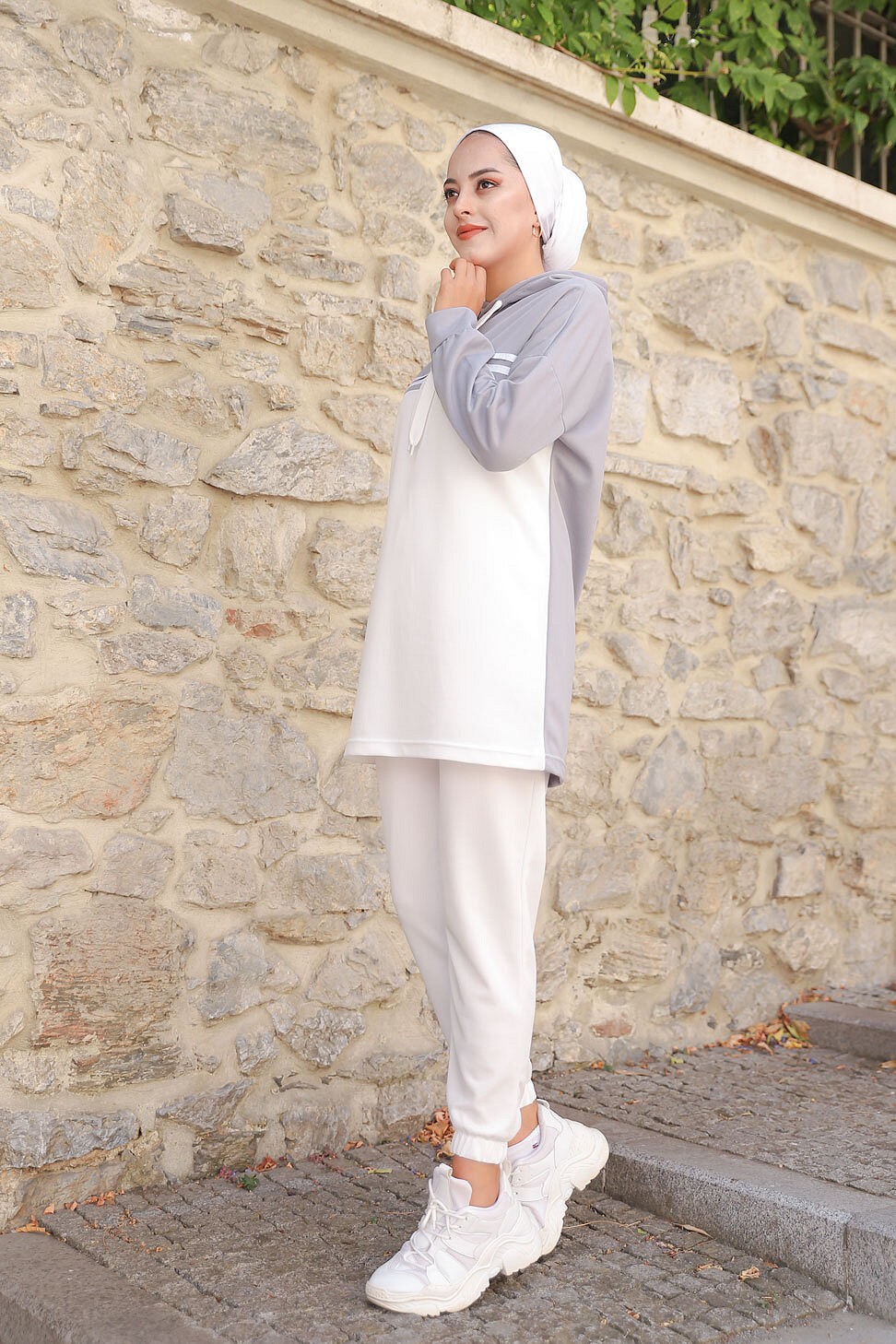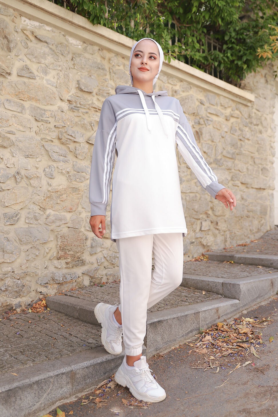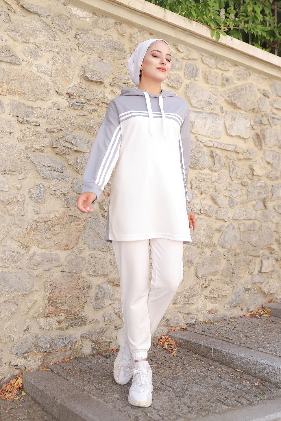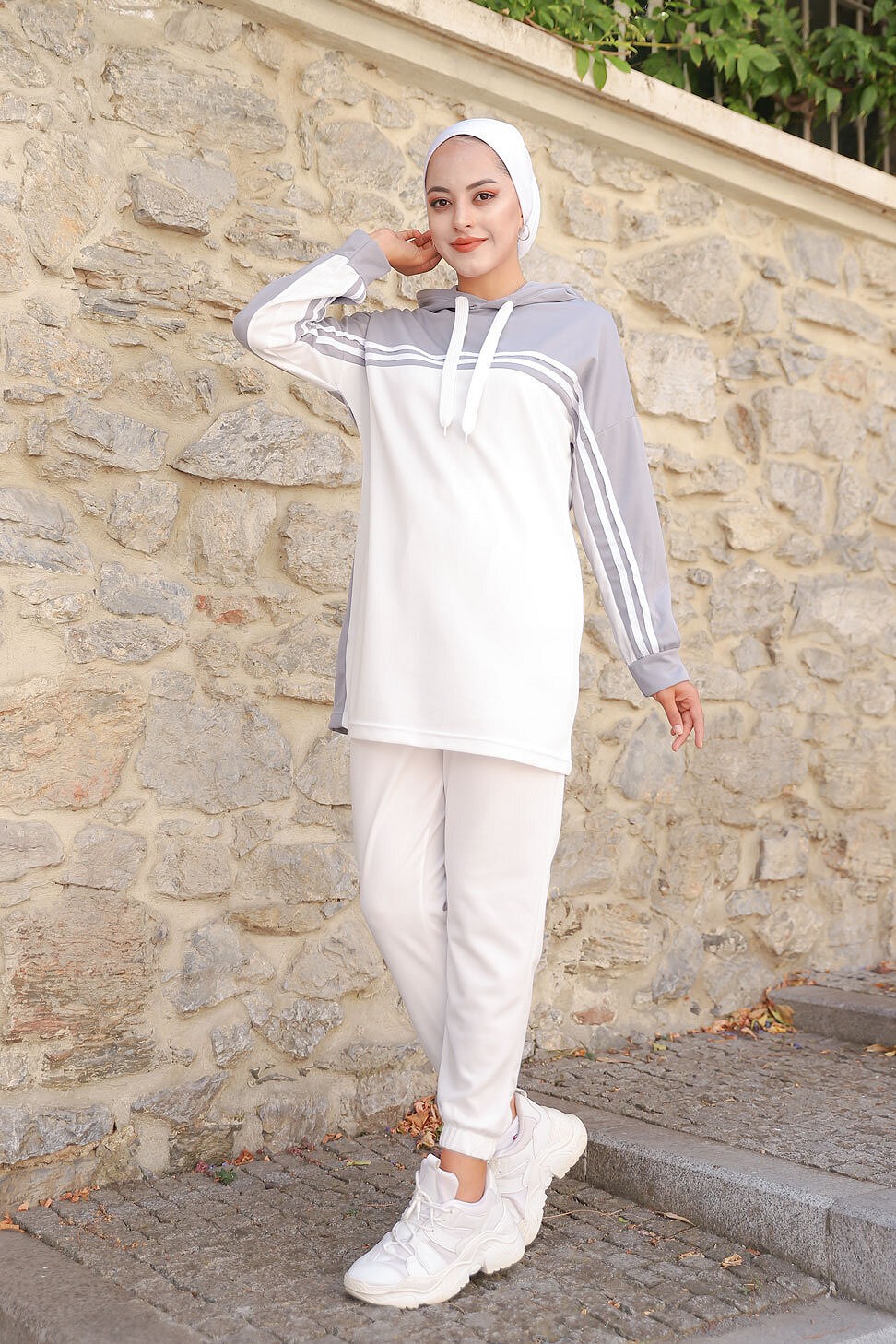 Survêtement femme (Ensemble Urban deux pièces : sweat à capuche et pantalon) - Couleur Blanc et Gris Vetement & Accessoire