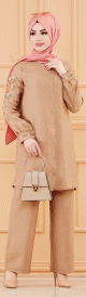 Ensemble habillé deux pièces tunique et pantalon (Vetement style femme voilée chic) - Couleur kaki - REF. 36019 (38.00 €)