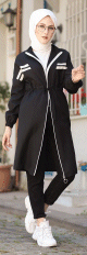 Veste longue (Vêtement Automne-Hiver pour Femme Voilée) - Couleur noir et blanc - REF. 38635 (24.90 €) - En Promotion à 19.90 €