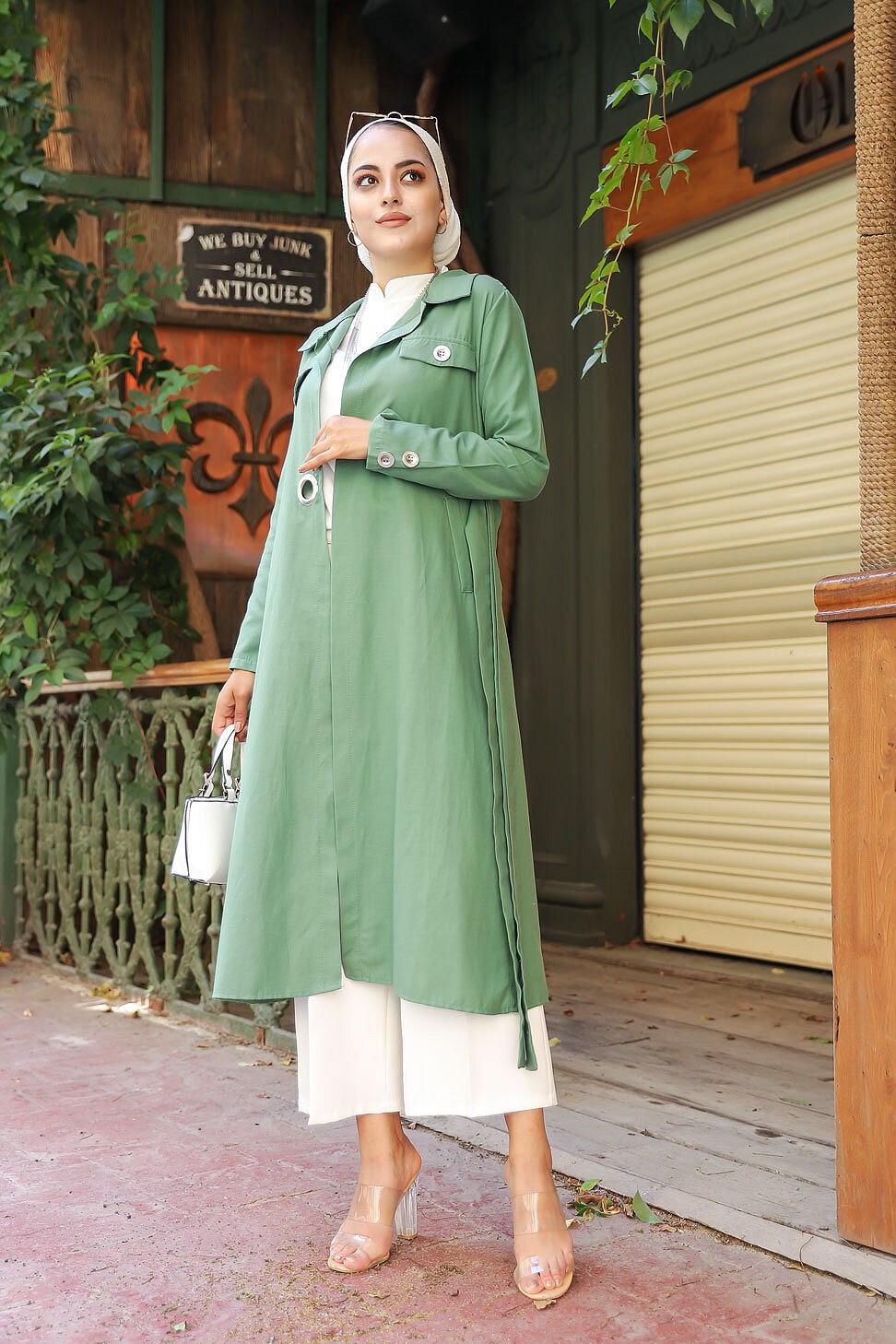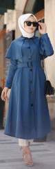 Robe mi longue style Trench (Vêtement hijab) pour femme voilée) - Couleur bleu pétrole - REF. 33200 (32.00 €)