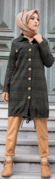 Chemise-Tunique boutonnée à carreaux pour femme (Vêtement Chaud Automne Hiver) - Couleur kaki - REF. 35214 (26.90 €)