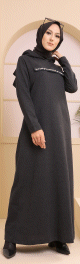 Robe longue décontractée avec capuche (Vetement hijab - Modest Fashion) - Couleur anthracite - REF. 35371 (27.00 €)