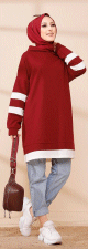 Tunique décontractée avec capuche (Sweat long pour femme voilée) - Couleur rouge bordeaux avec bandes blanches - REF. 35623 (19.00 €)