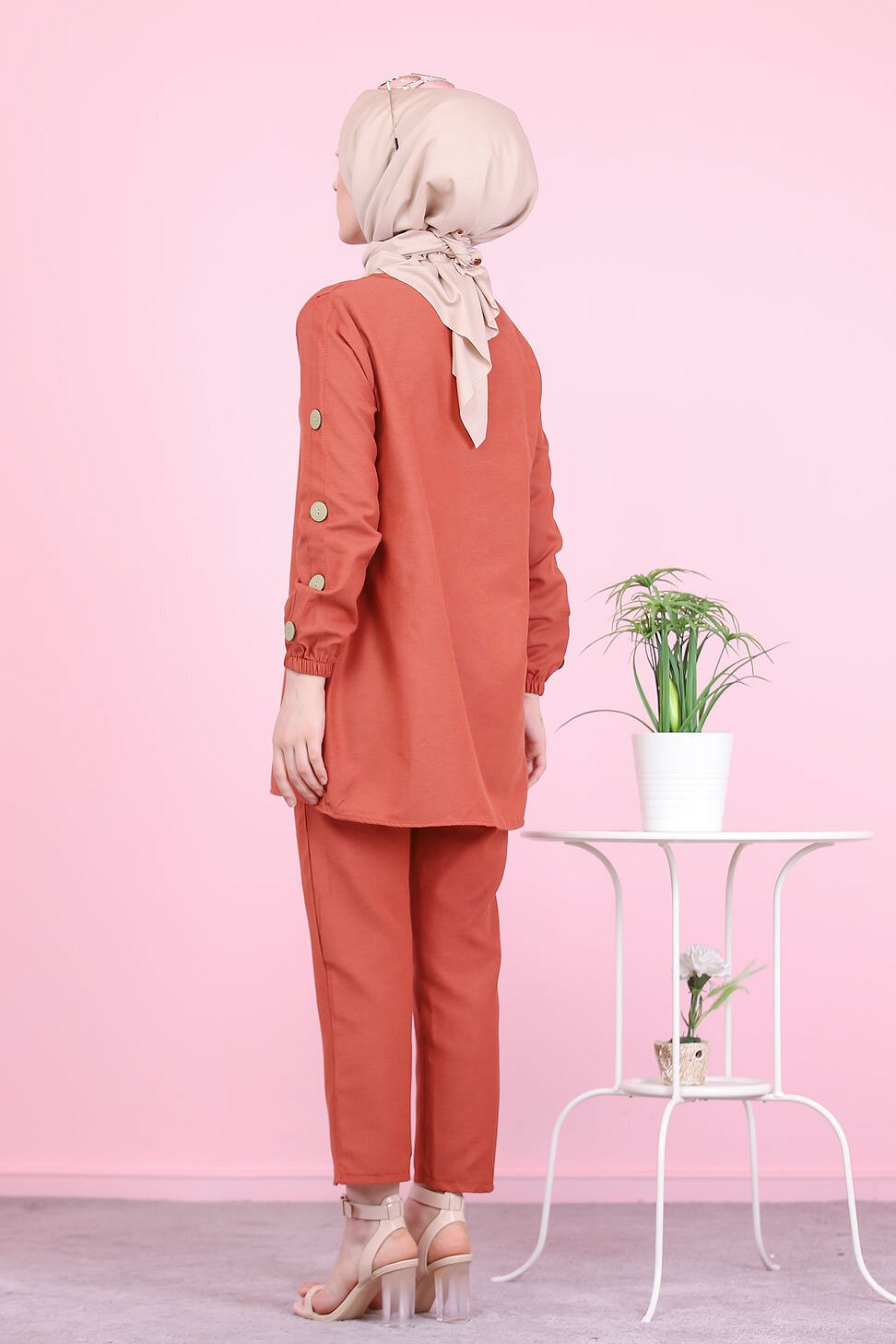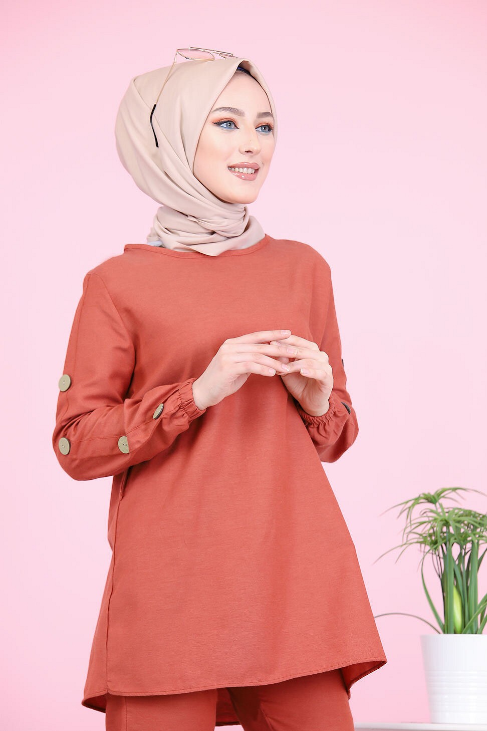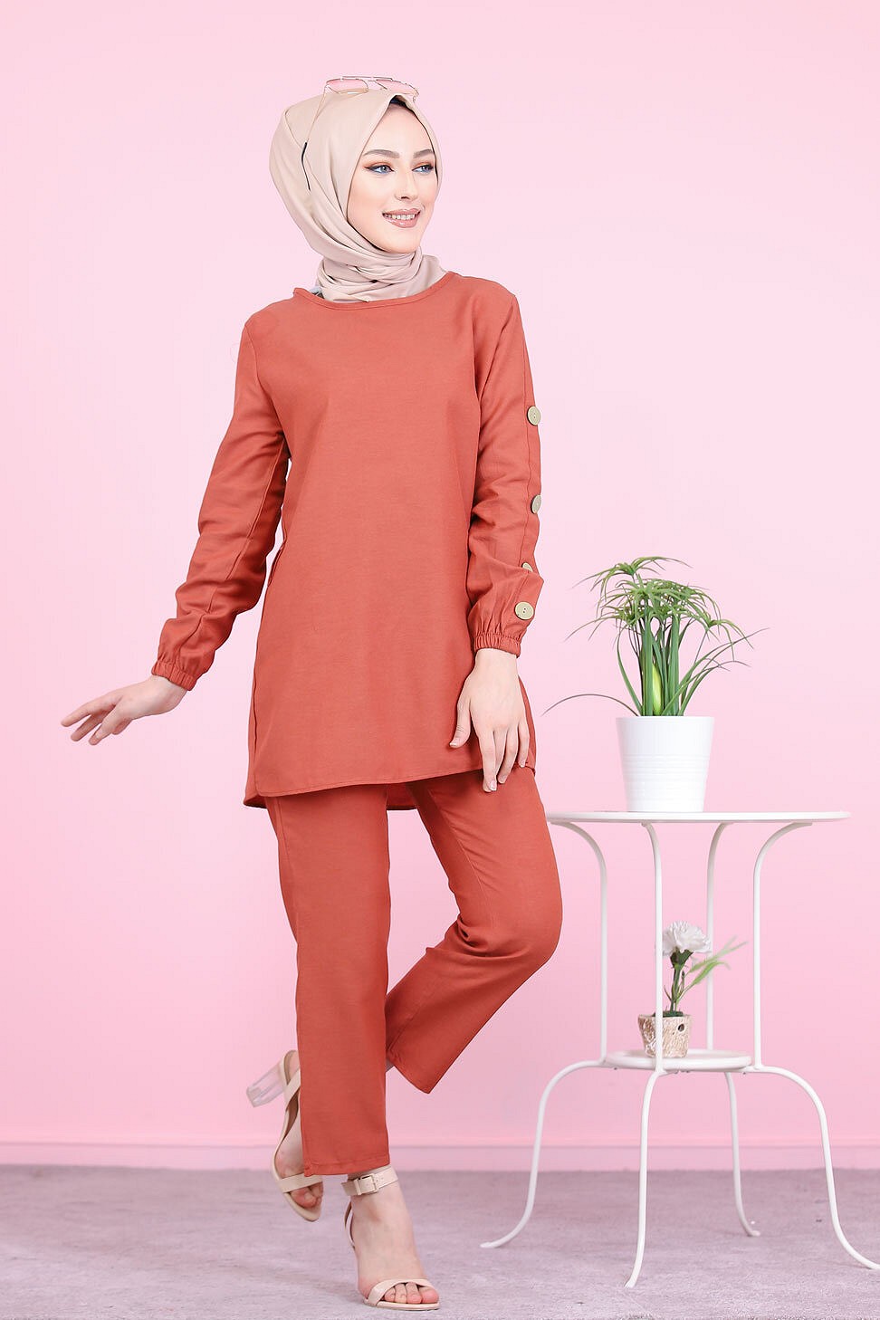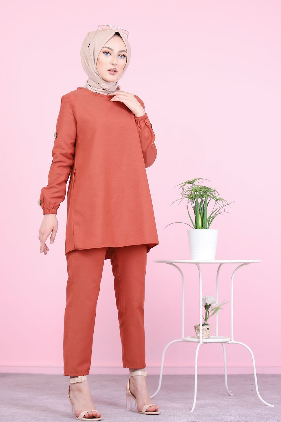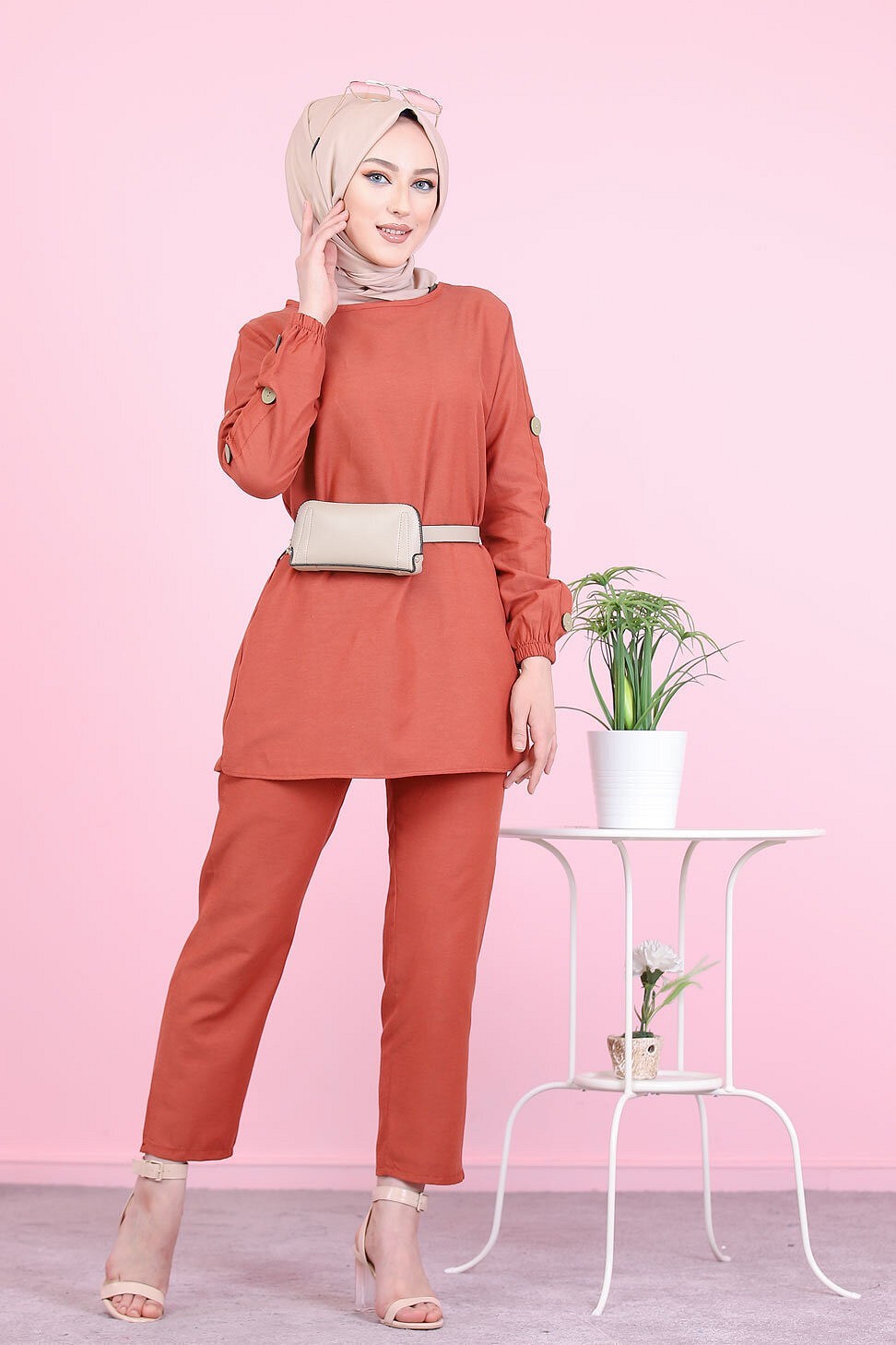 Ensemble tunique et pantalon assorti avec ceinture (Vetement pour femme voilée) - Couleur brique Vetement & Accessoire
