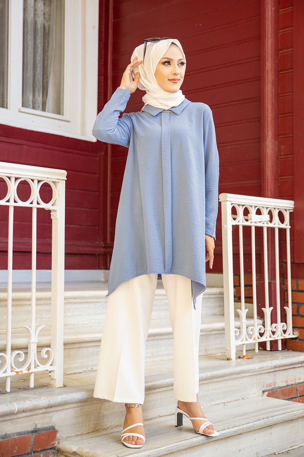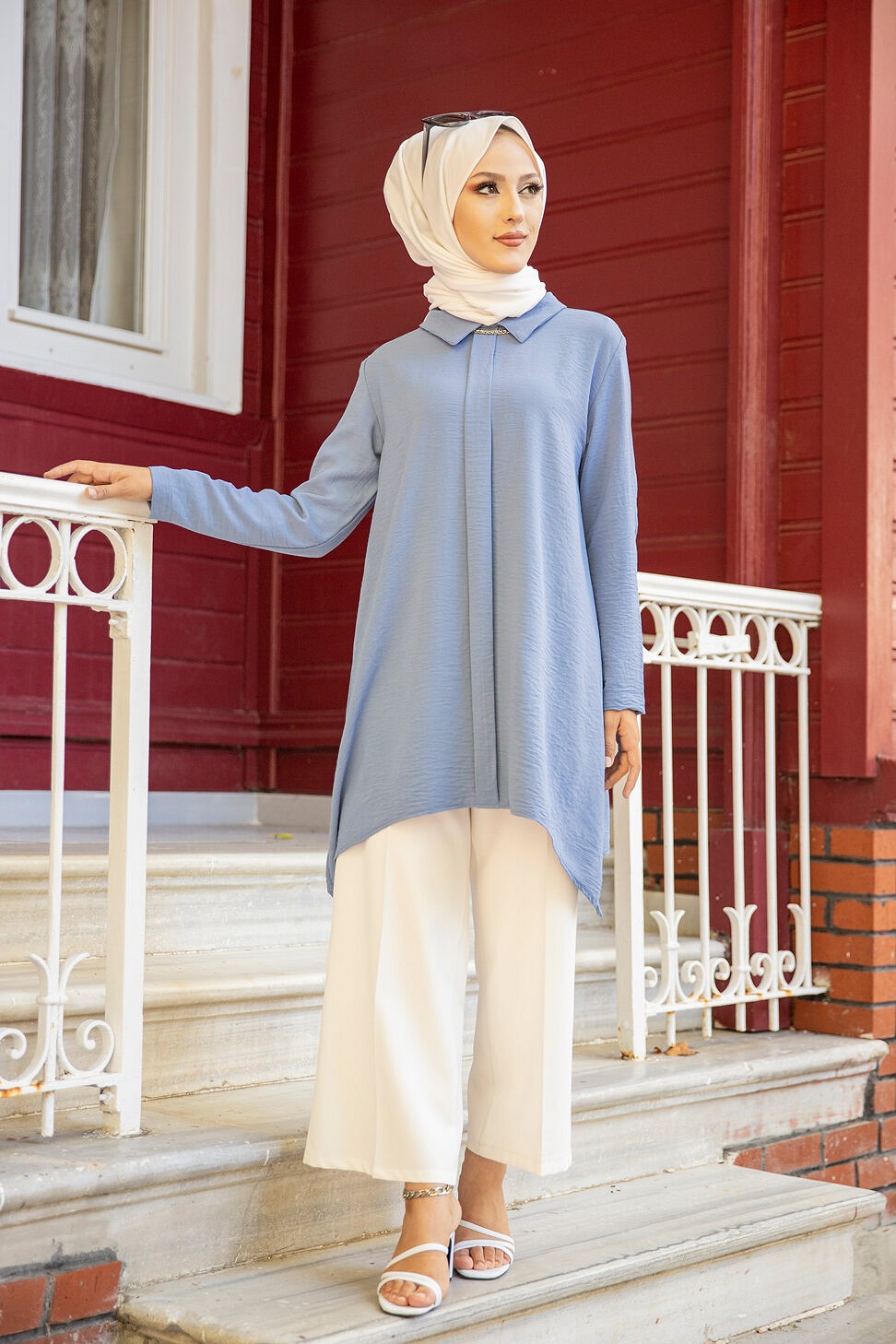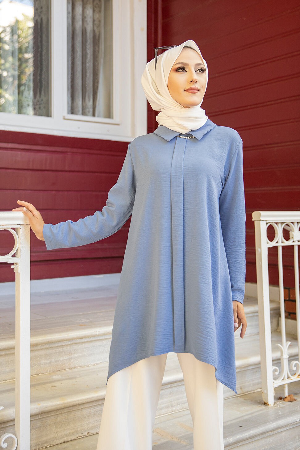 Tunique ample coupe originale (Vetement modeste pour la femme voilée) - Couleur bleu Vetement & Accessoire