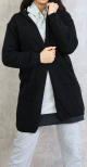 Cardigan long à capuche - Robe zippée style sportswear pour femme voilée - Couleur Noir - REF. 32197 (25.00 €) - En Promotion à 19.90 €