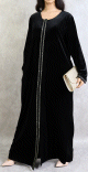 Robe de soirée style Abaya Dubaï noire ouverte de qualité avec broderie et strass et ceinture interne - REF. 38191 (49.00 €)
