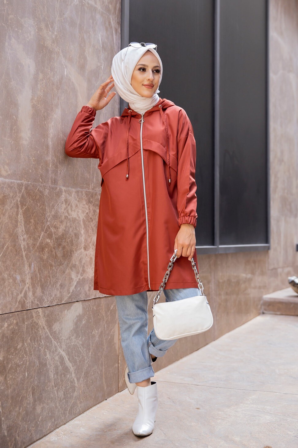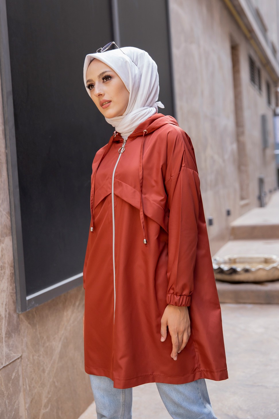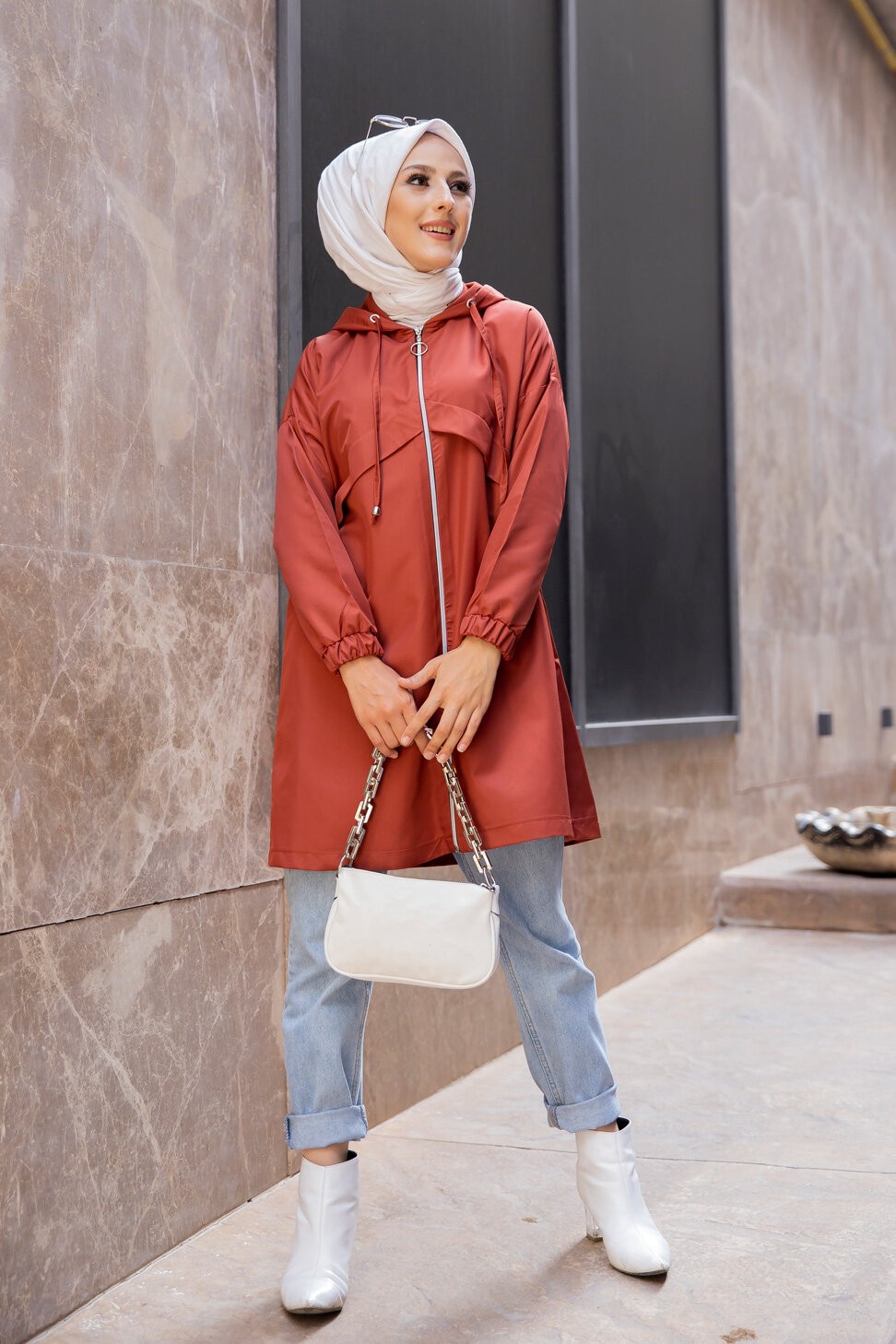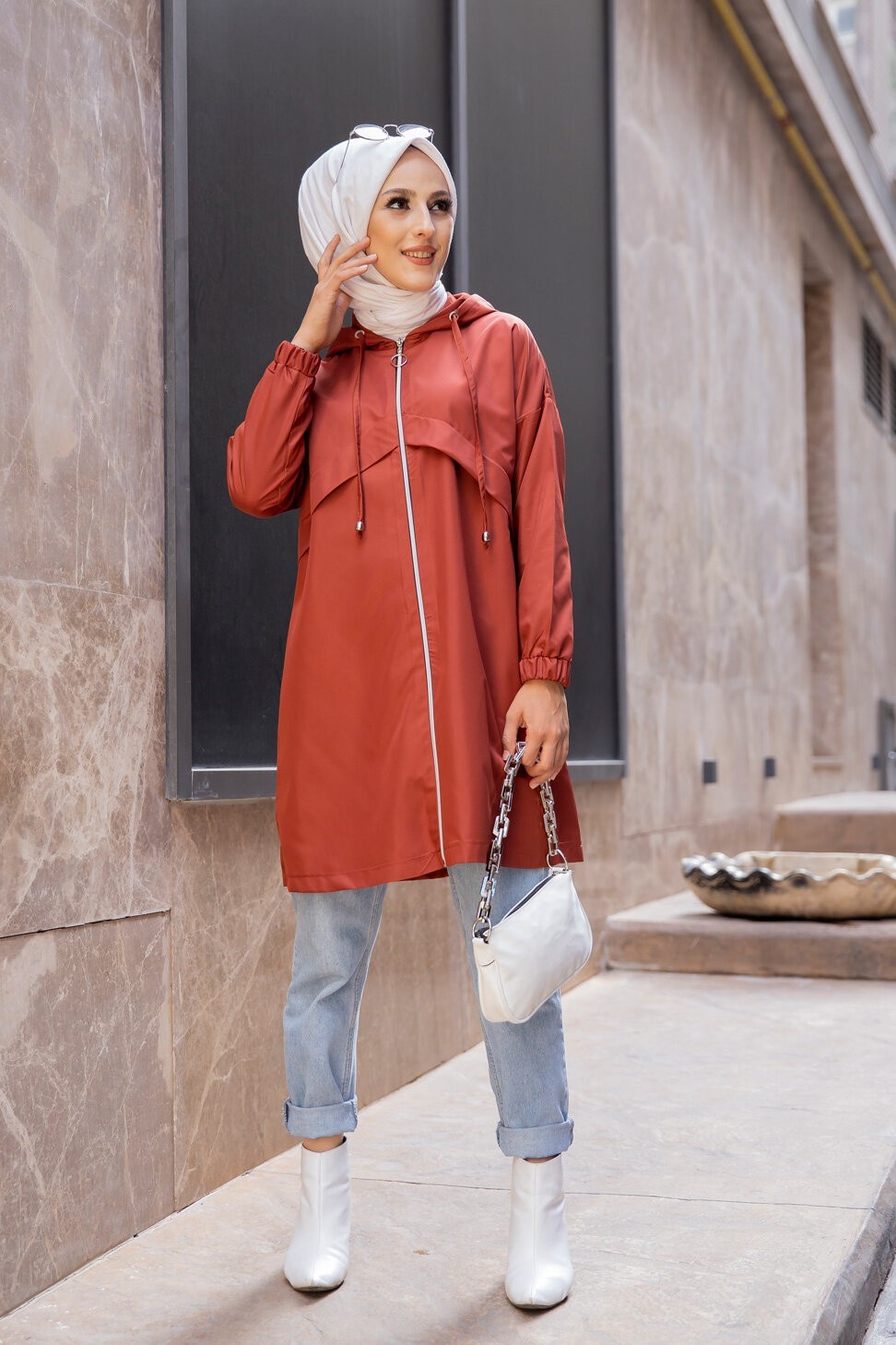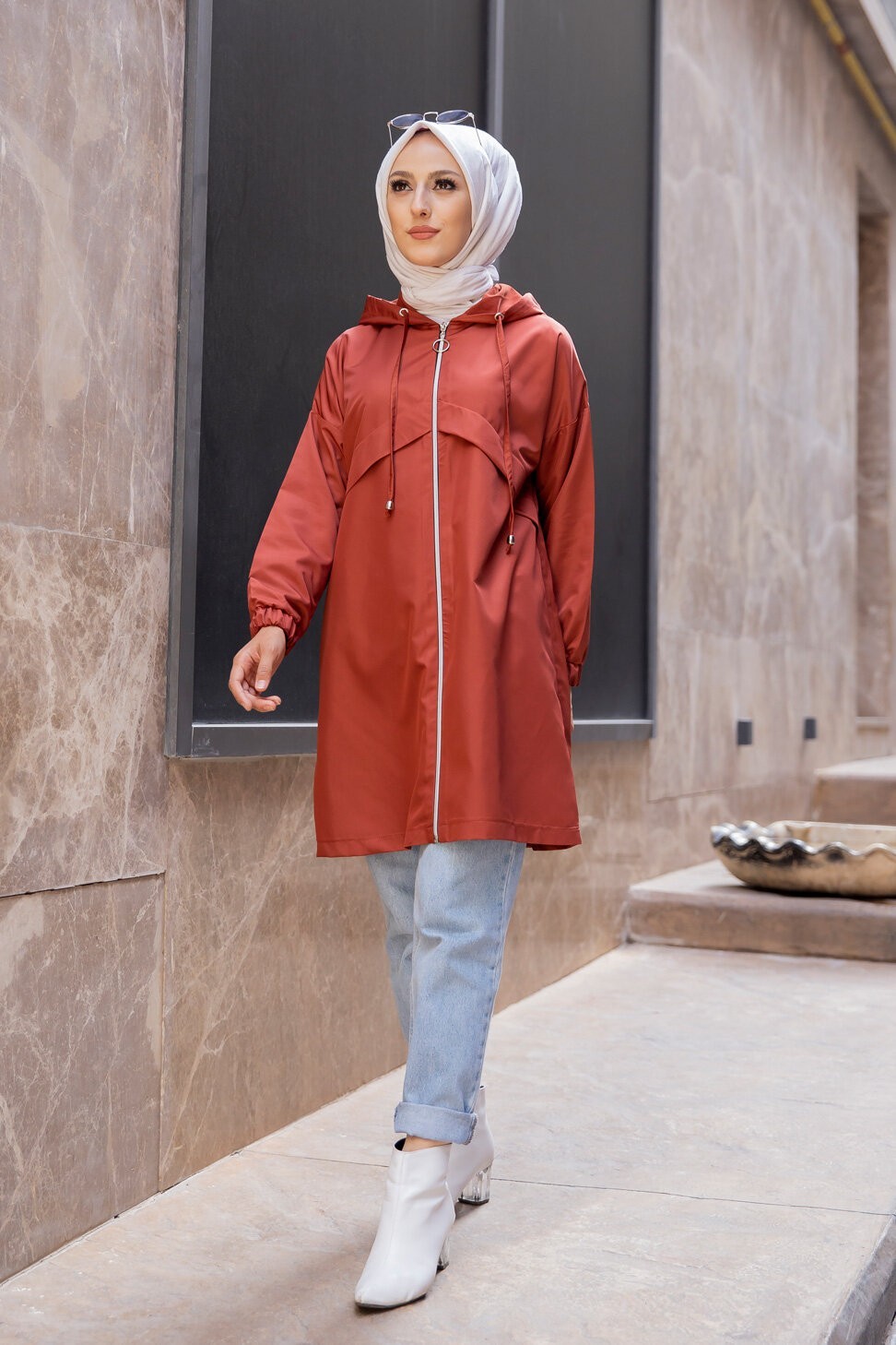 Trench parka pour femme (Vetement hijab automne hiver) - Couleur brique Vetement & Accessoire