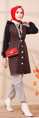 Tunique avec capuche pour femme (Vêtement moderne pour Hijab) - Couleur anthracite et rouge - REF. 35687 (23.00 €)