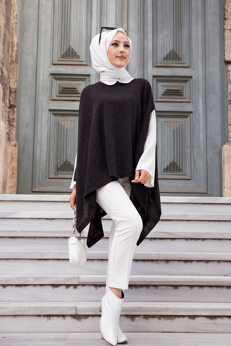 Tunique-pull pour femme (Vêtement Hijab chaud - Saisons Automne Hiver) - Couleur noir - REF. 35538 (24.90 €)