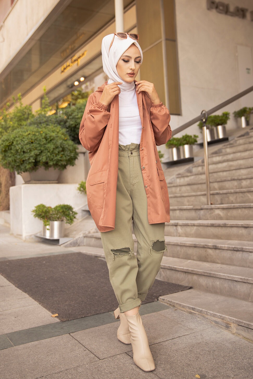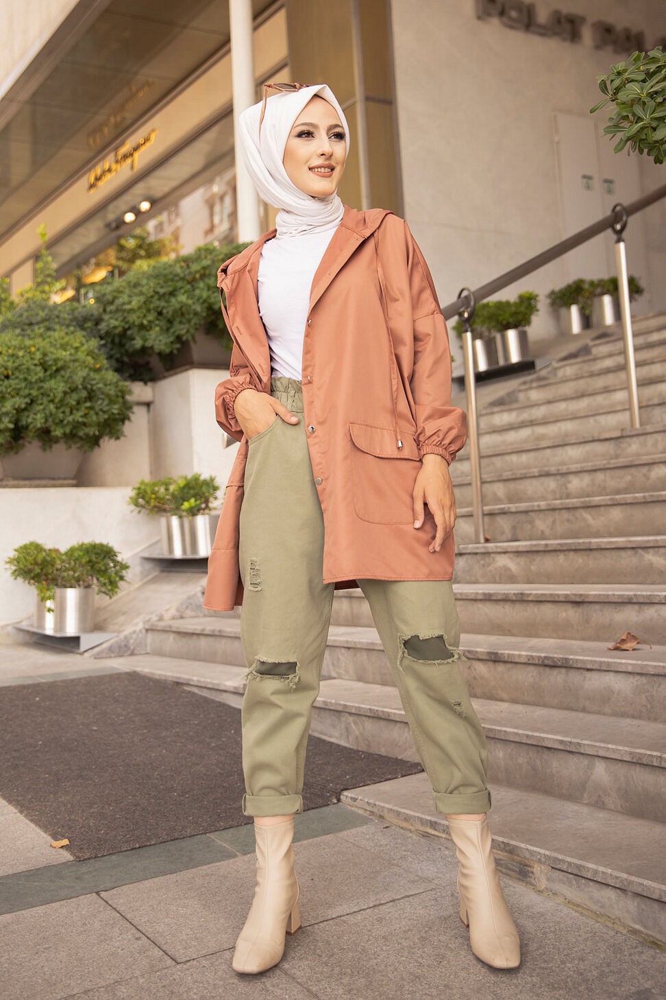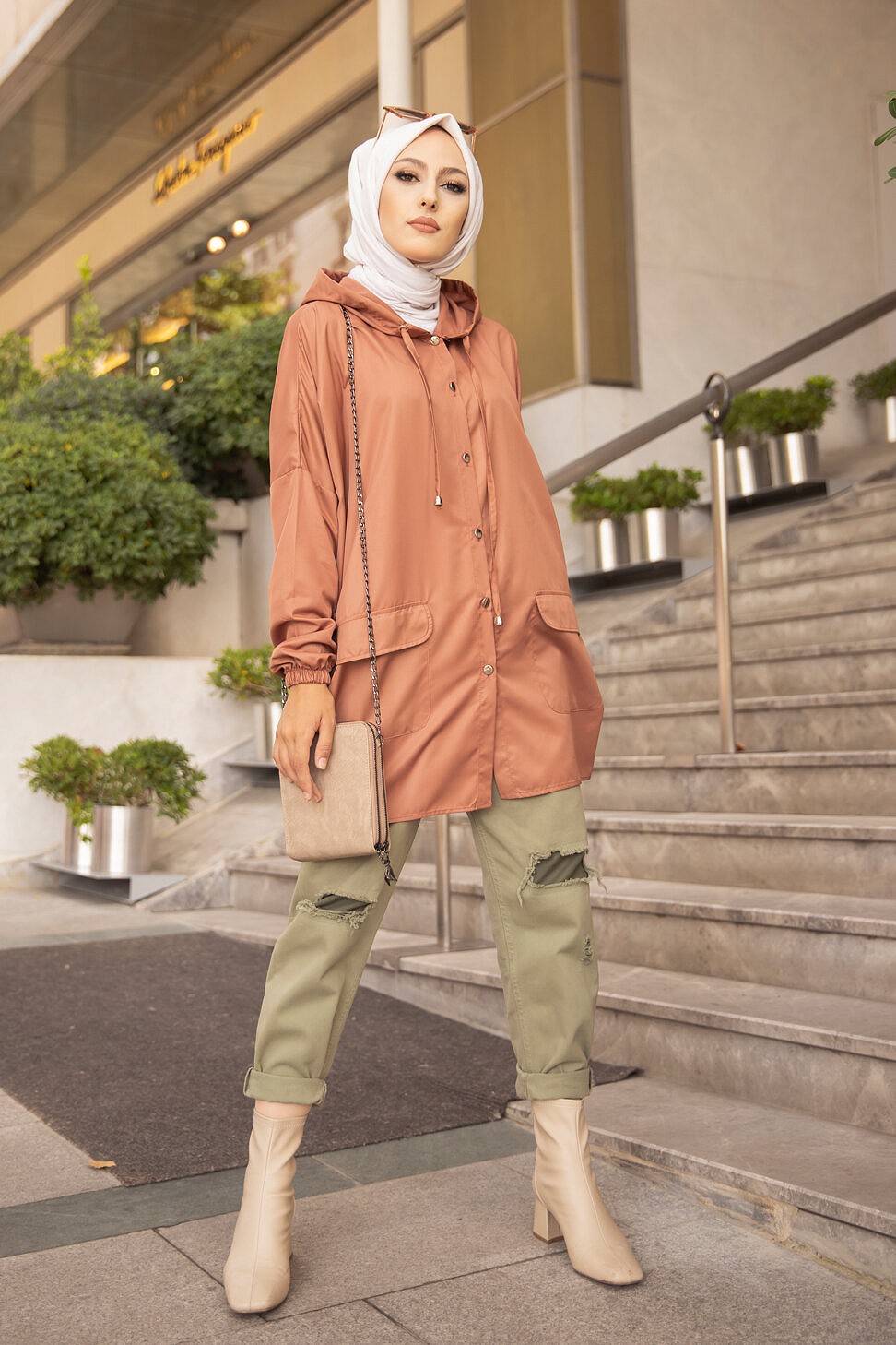 Trench - Parka ample pour femme (Vêtement Hijab - Nouveautés) - Couleur rouille Vetement & Accessoire