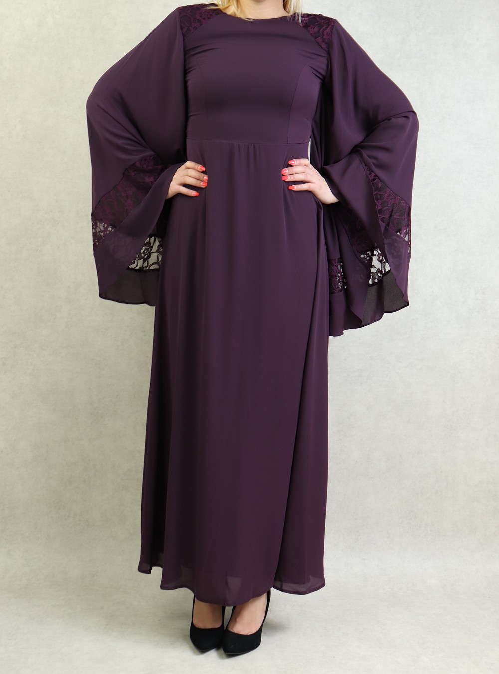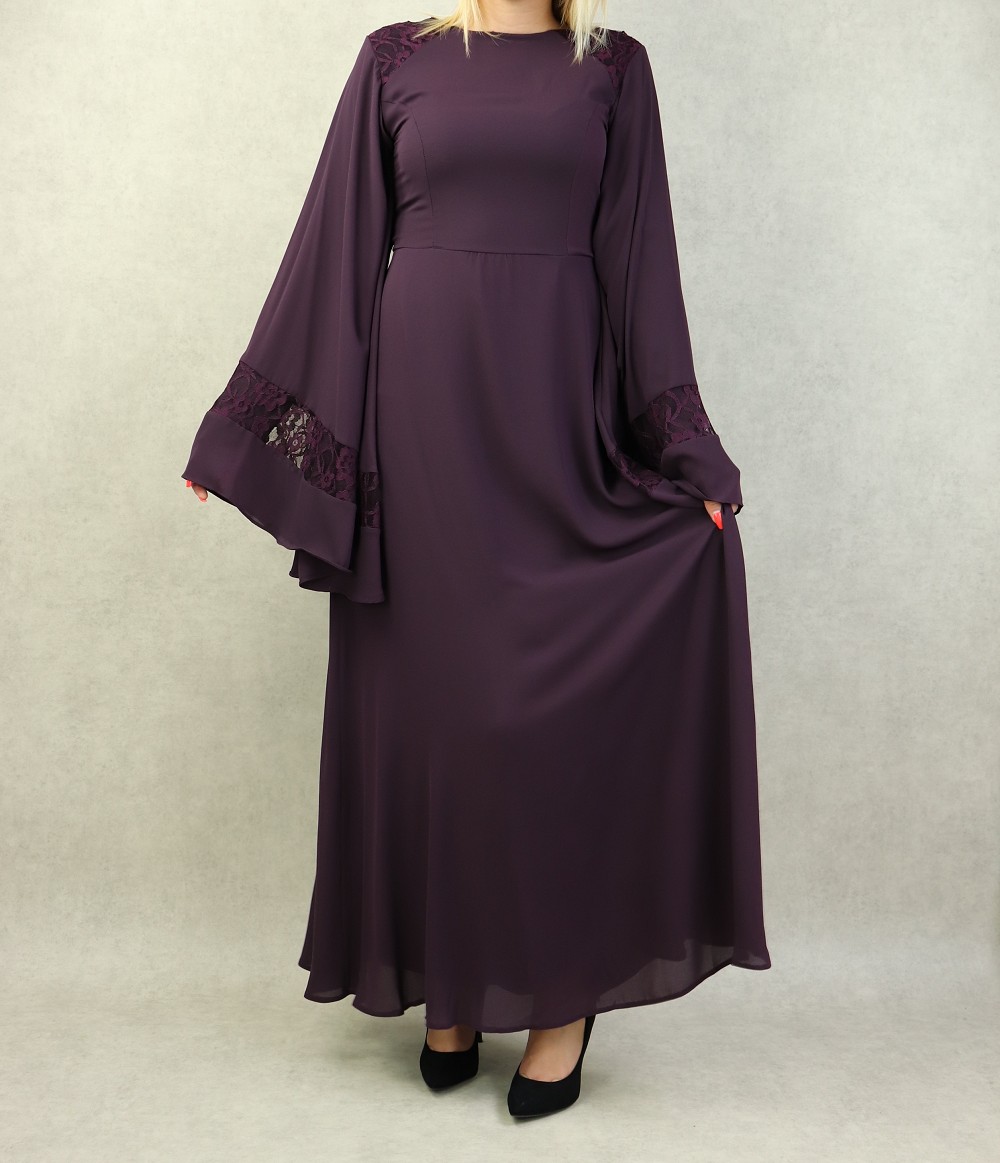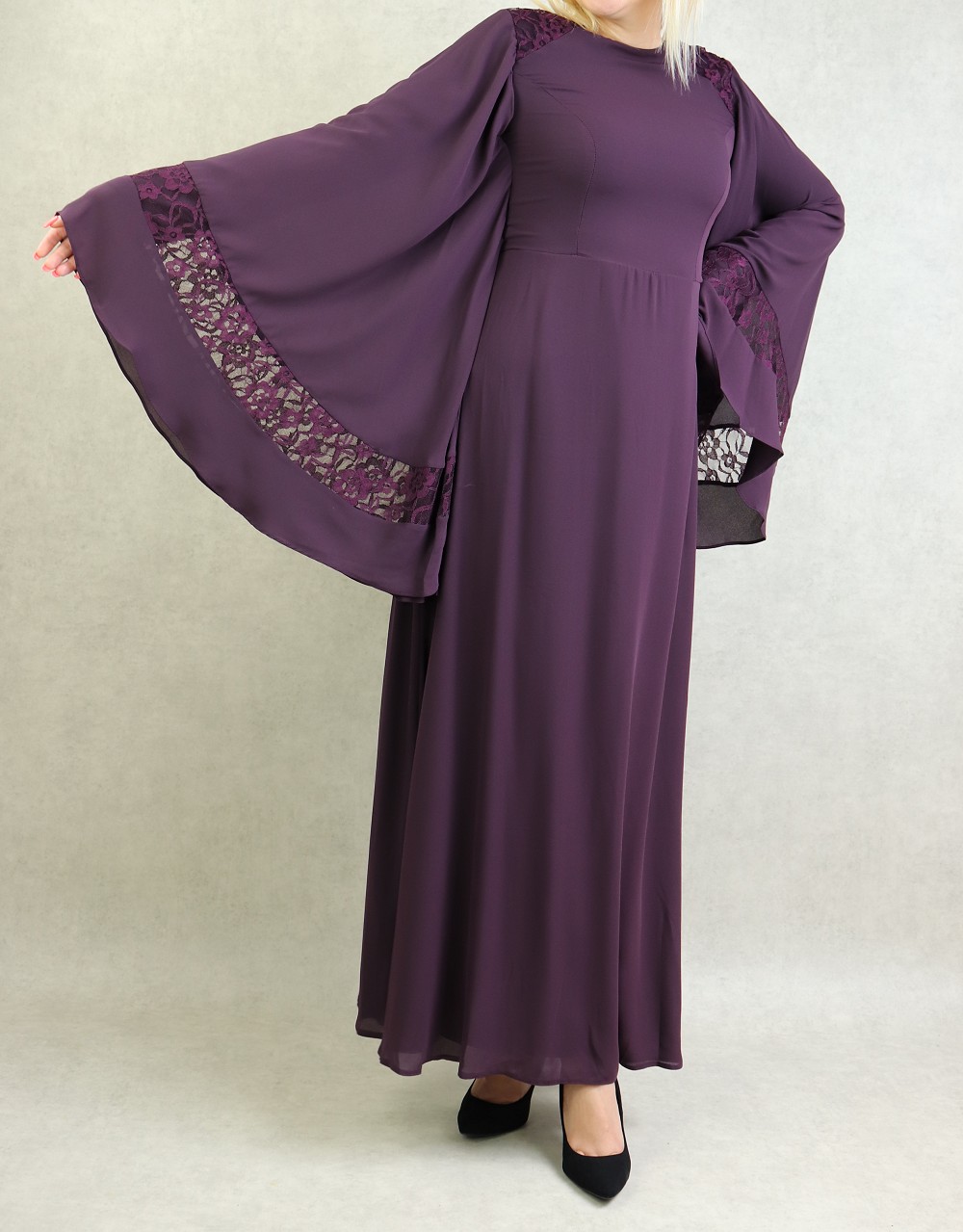 Robe de soirée maxi-longue élégante et raffinée manches kimono pour femme - Couleur violet Vetement & Accessoire