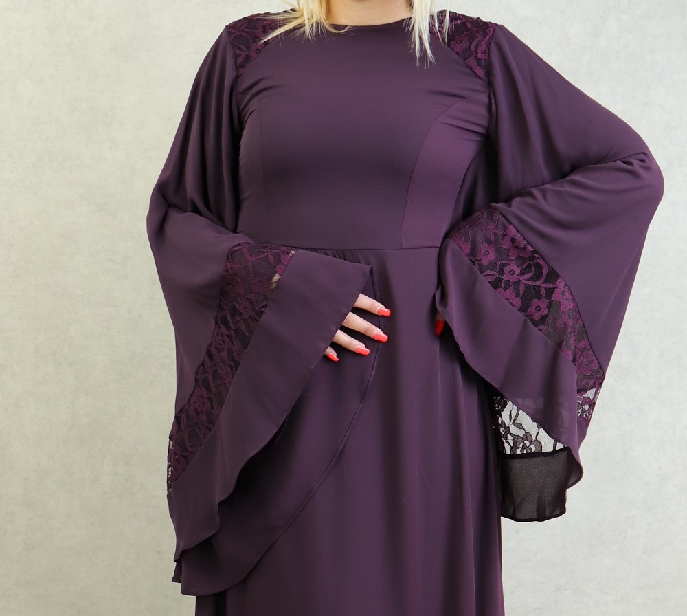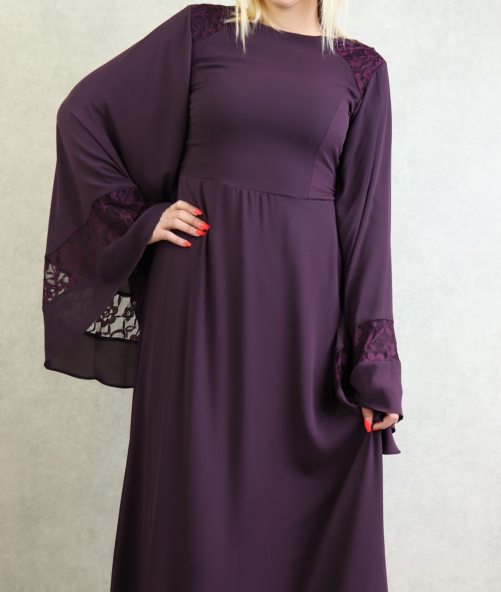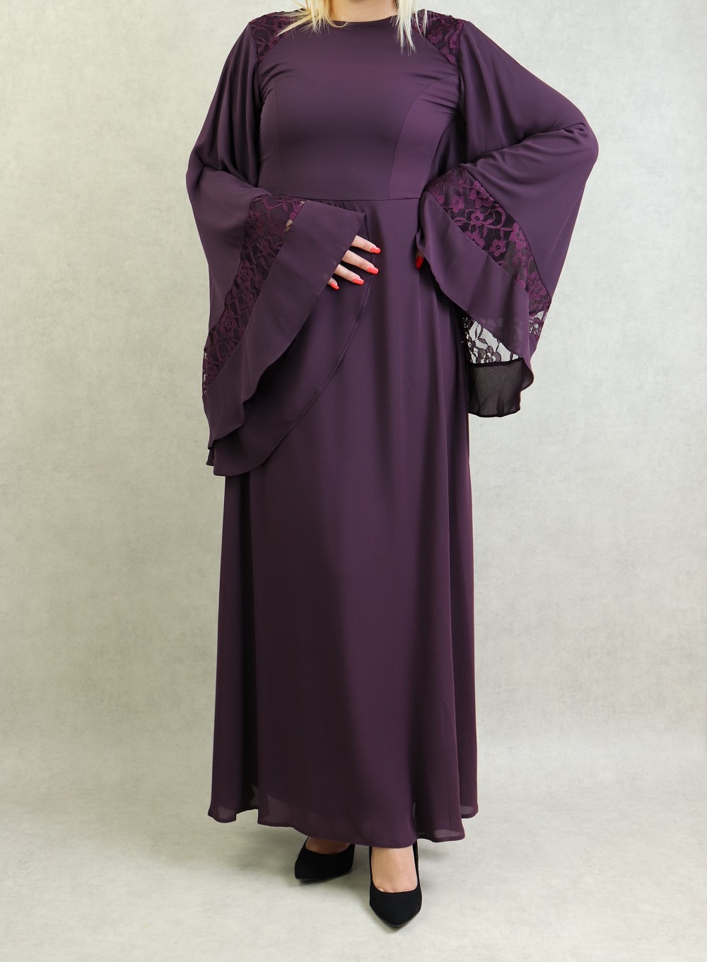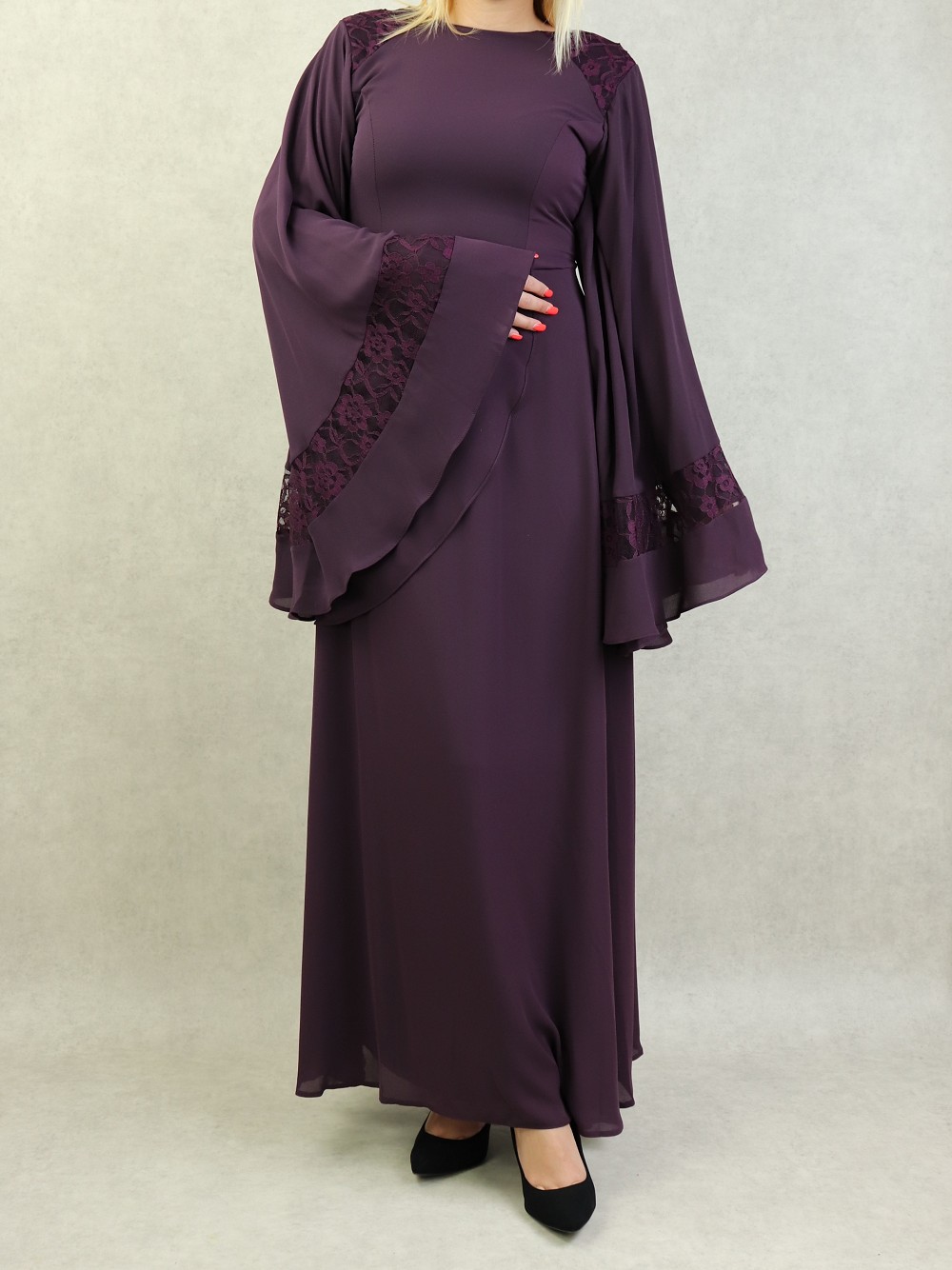 Robe de soirée maxi-longue élégante et raffinée manches kimono pour femme - Couleur violet Vetement & Accessoire