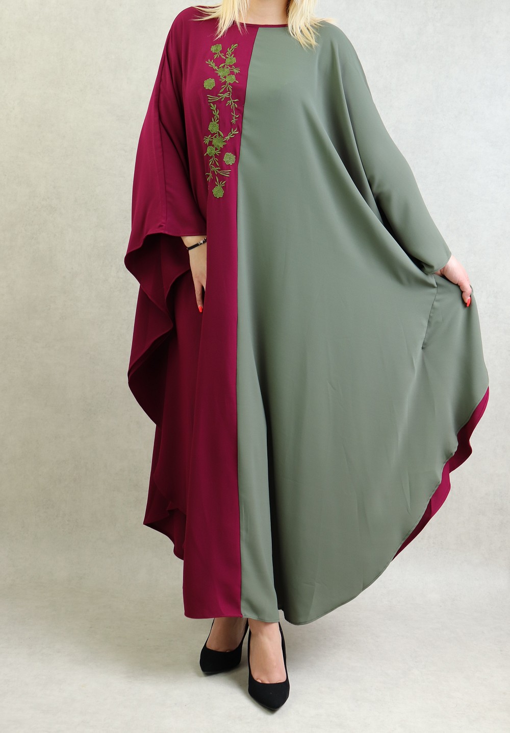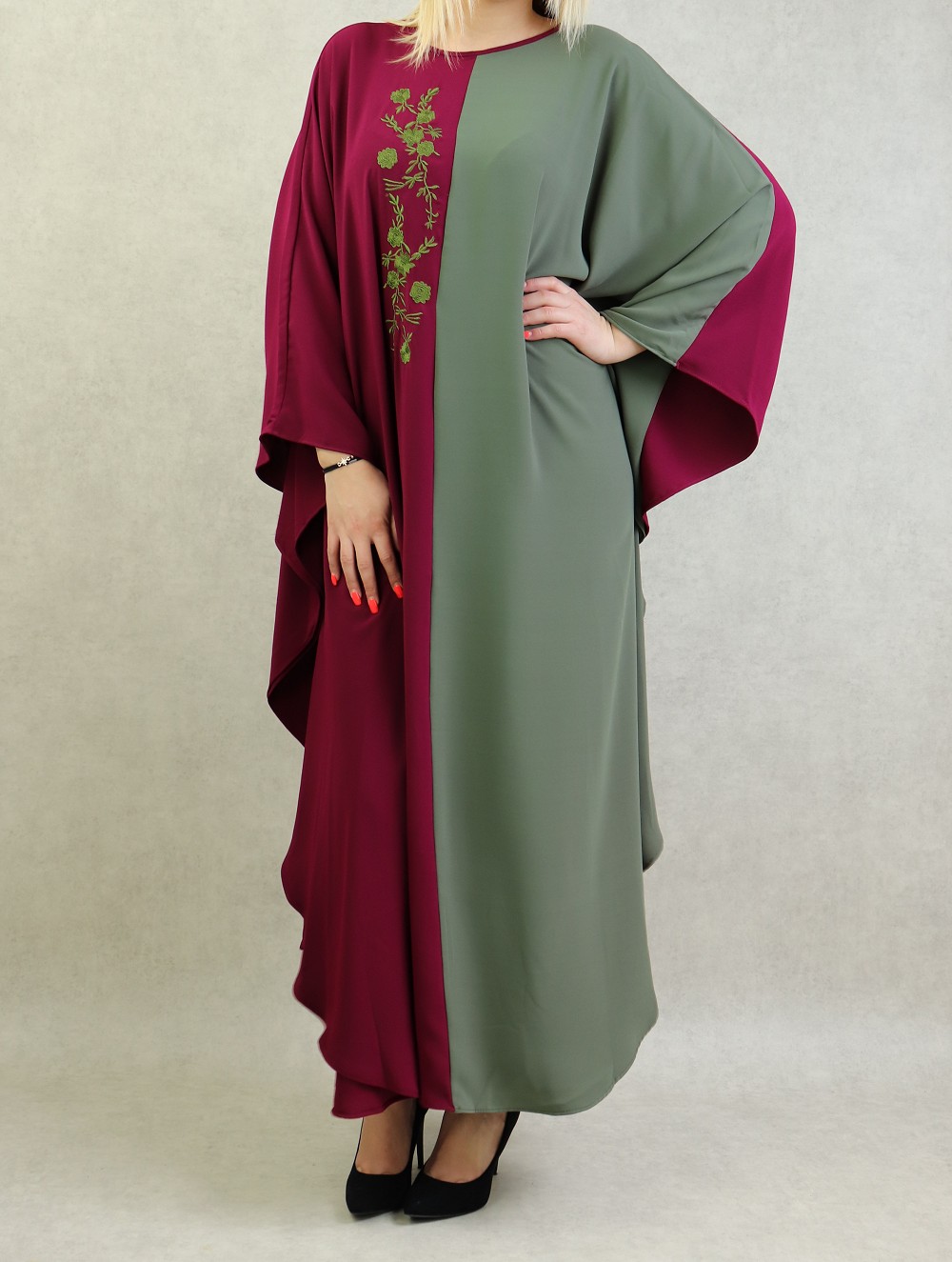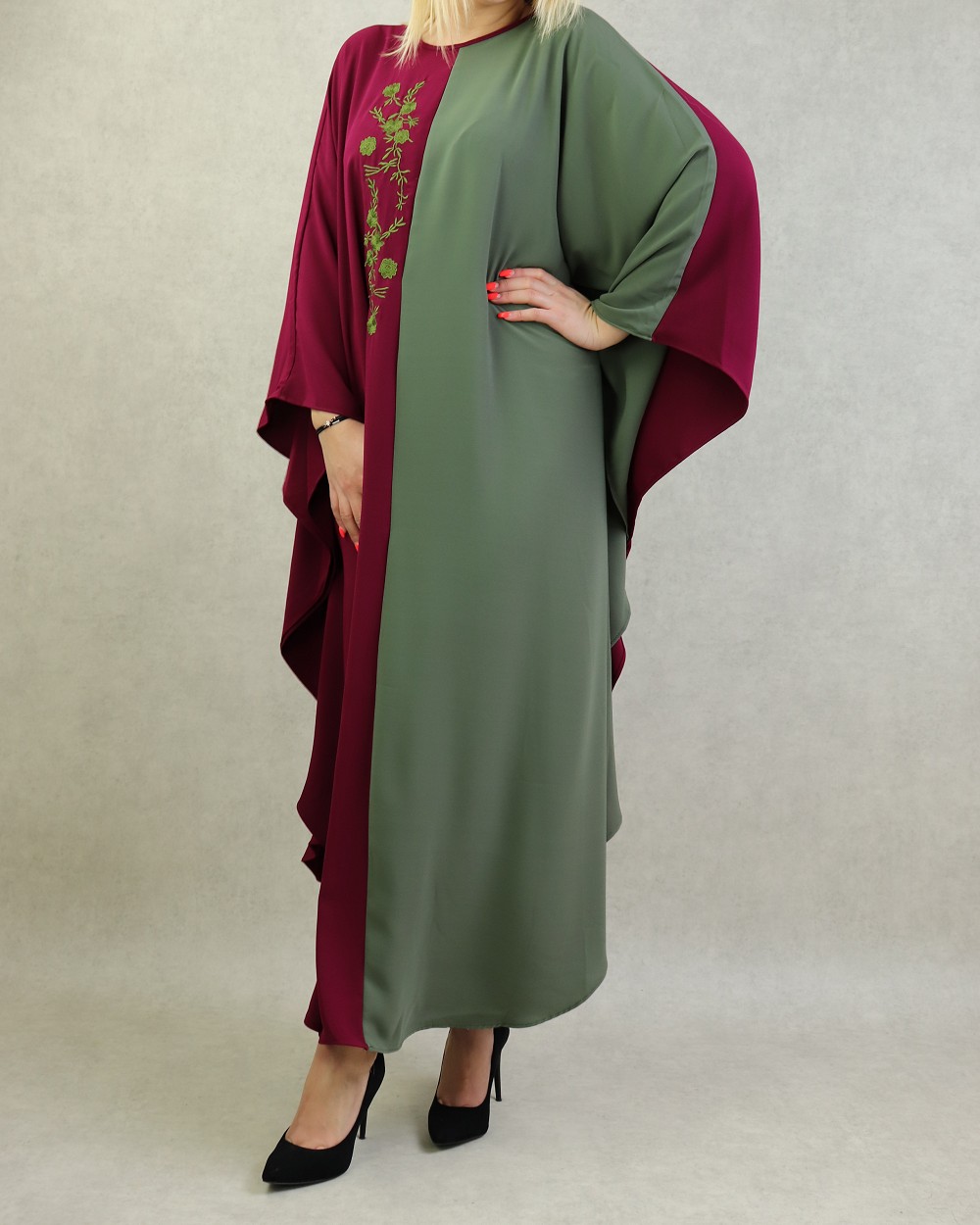 Robe de soirée bi-couleur effet papillon brodée pour femme - Couleur Framboise/Kaki Vetement & Accessoire