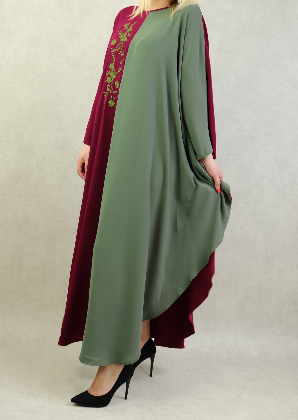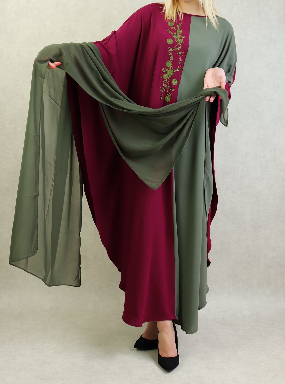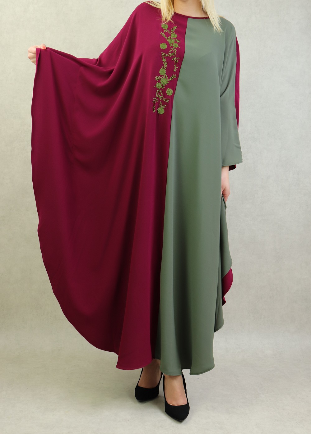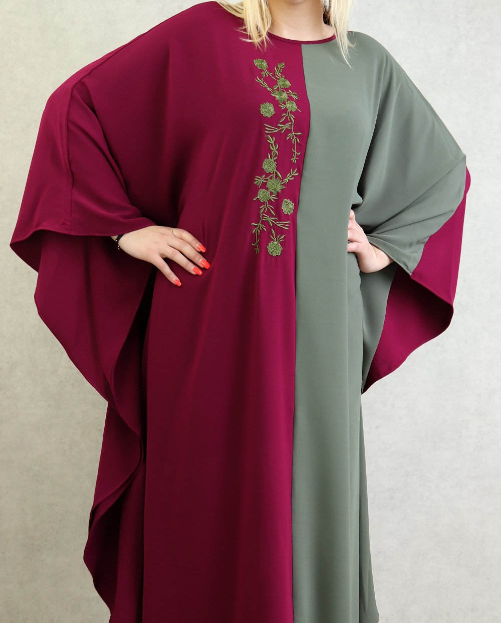 Robe de soirée bi-couleur effet papillon brodée pour femme - Couleur Framboise/Kaki Vetement & Accessoire