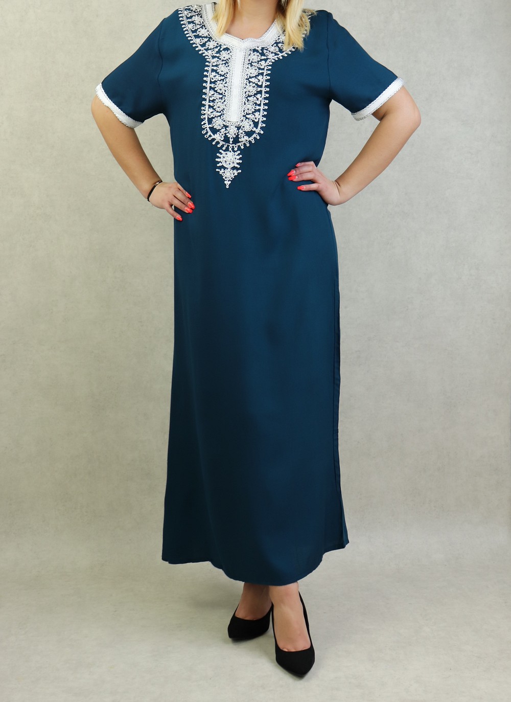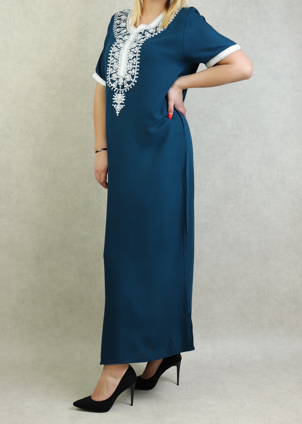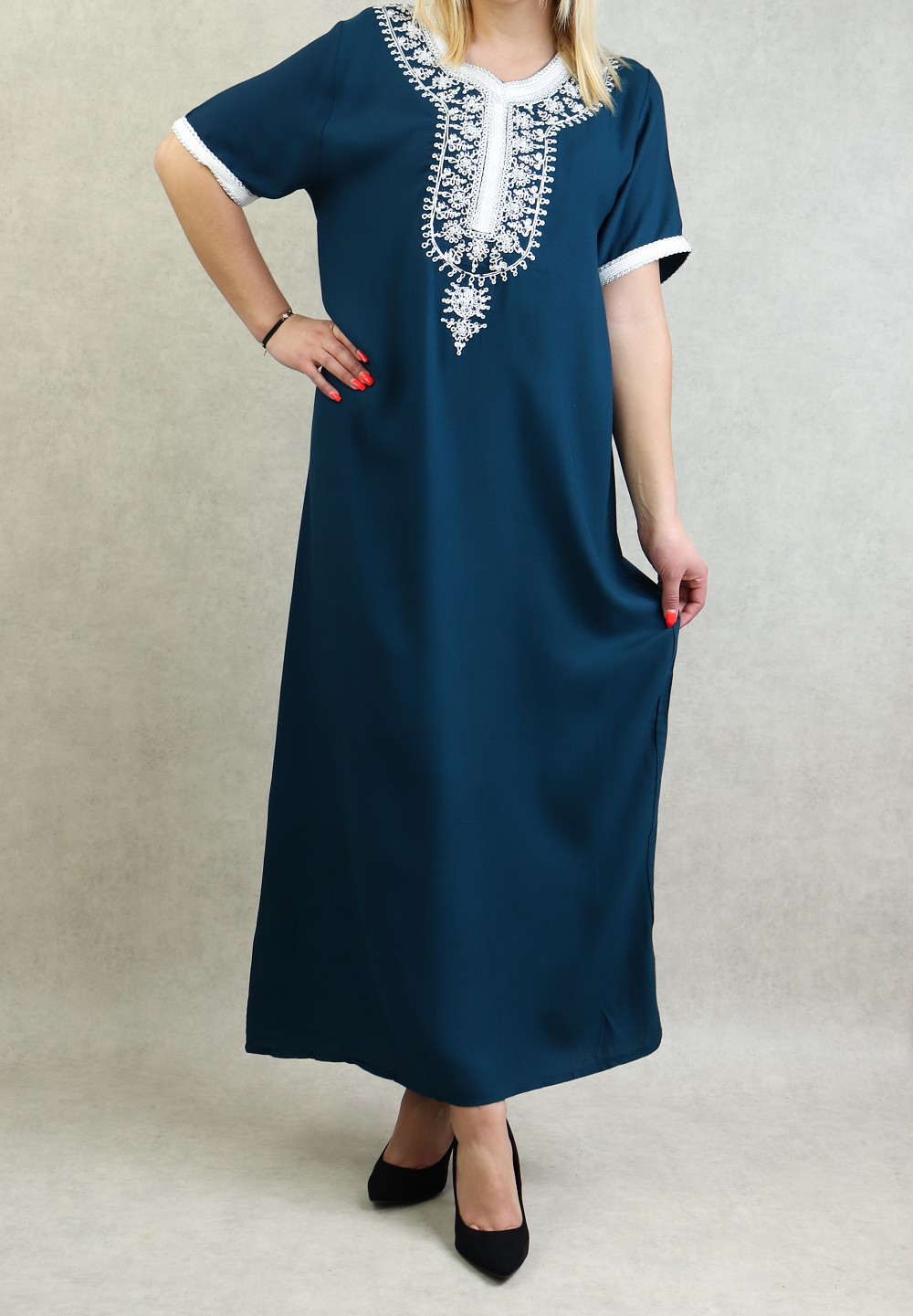 Cette robe orientale à manches courtes, encolure en cœur, tissu doux type coton et léger vous donnera une allure incroyable.