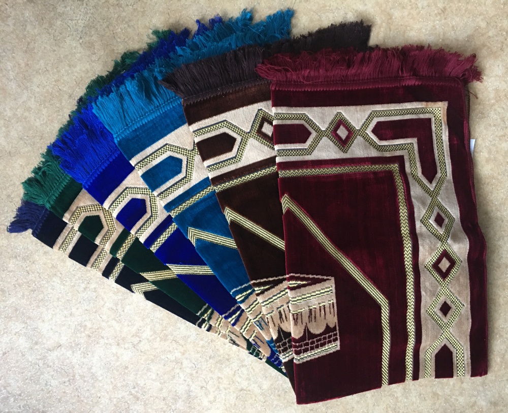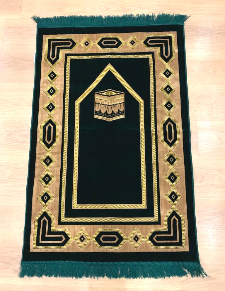 Tapis en velours avec borderies et illustration de La Kaaba.