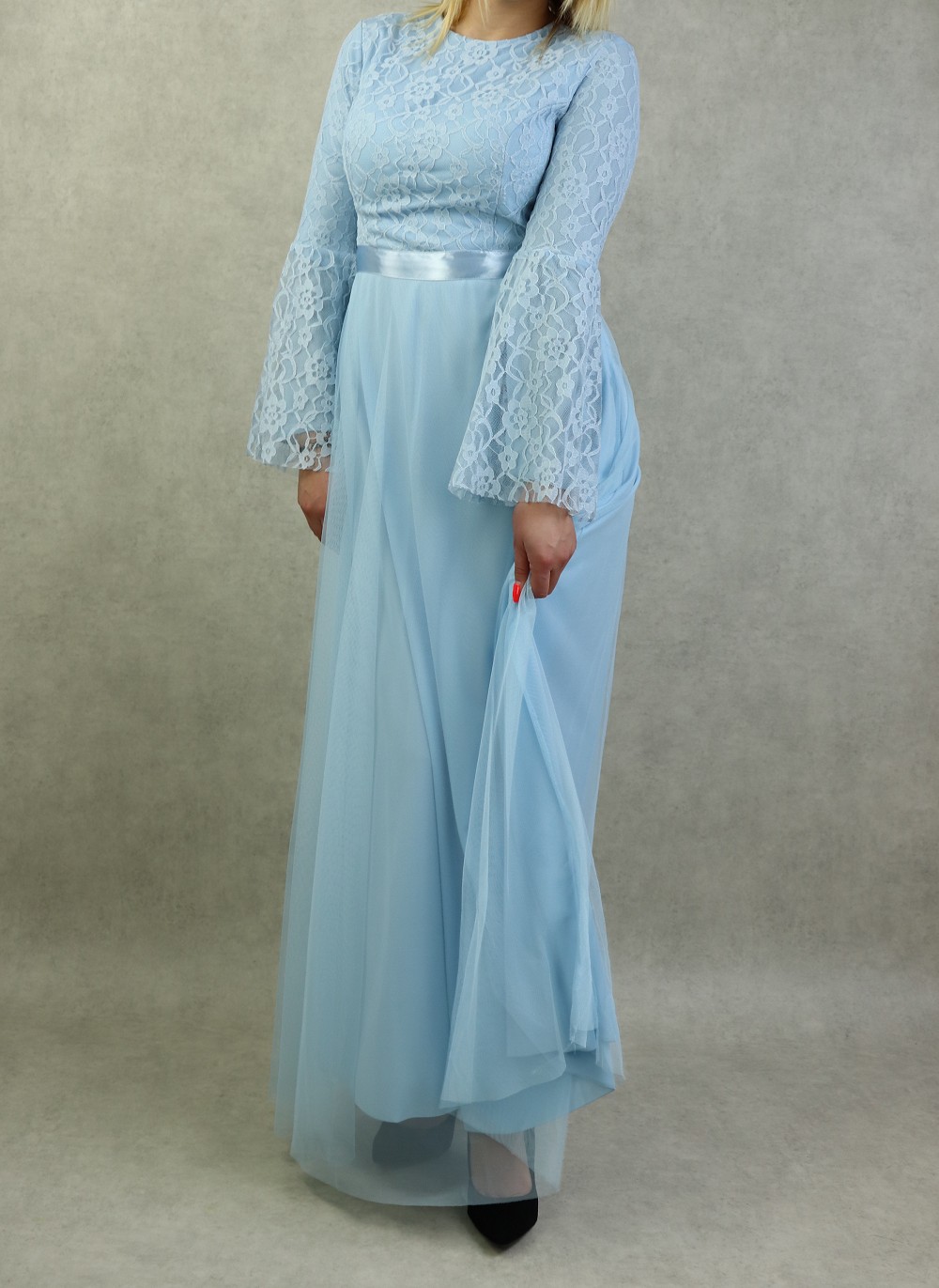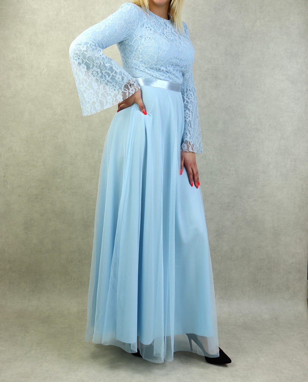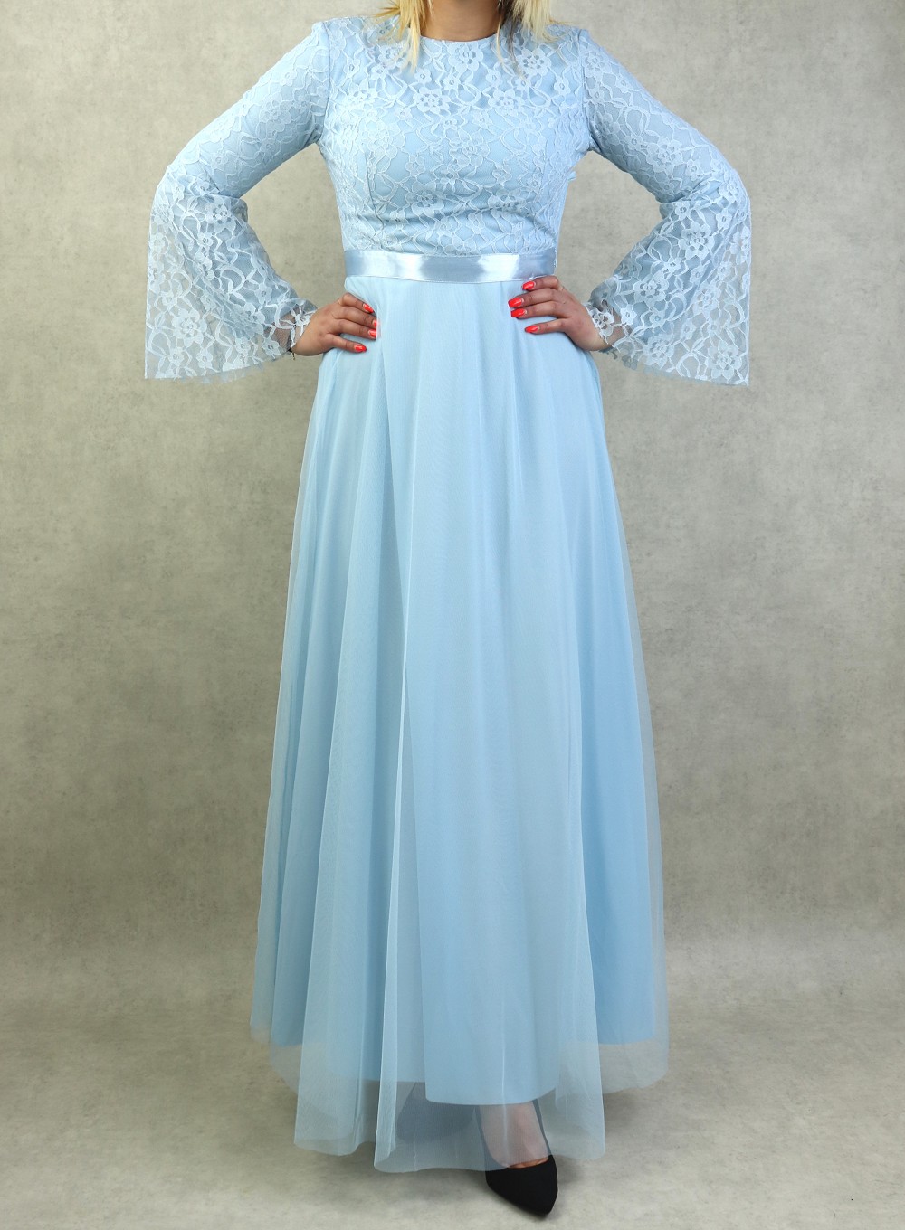 Robe de soirée ou de cérémonie élégante et classe en tulle et dentelle pour femme - Marque Amelis Paris - Couleur bleu ciel Vetement & Accessoire