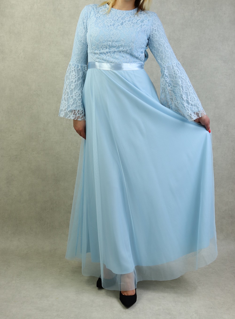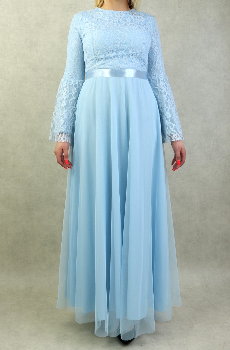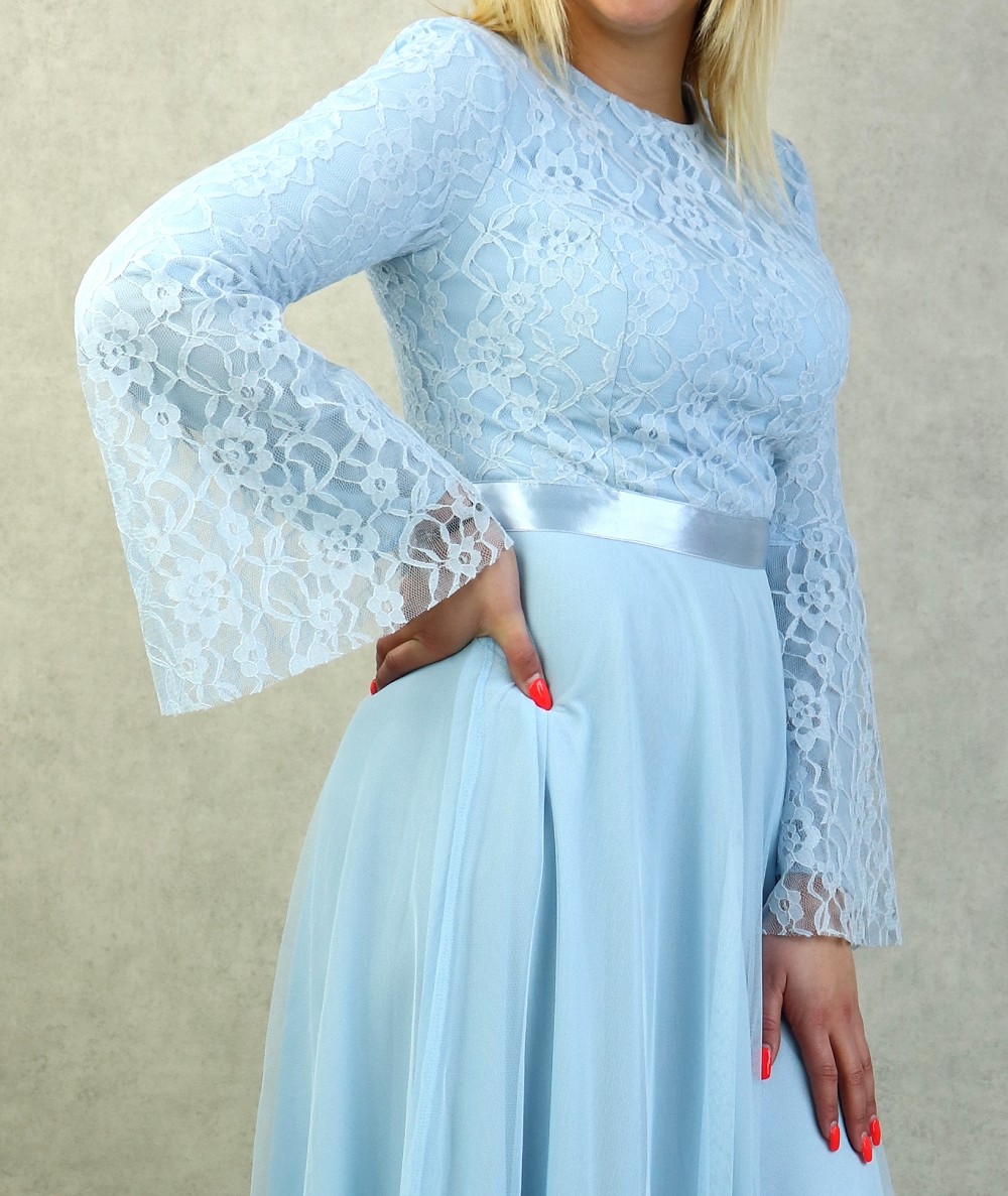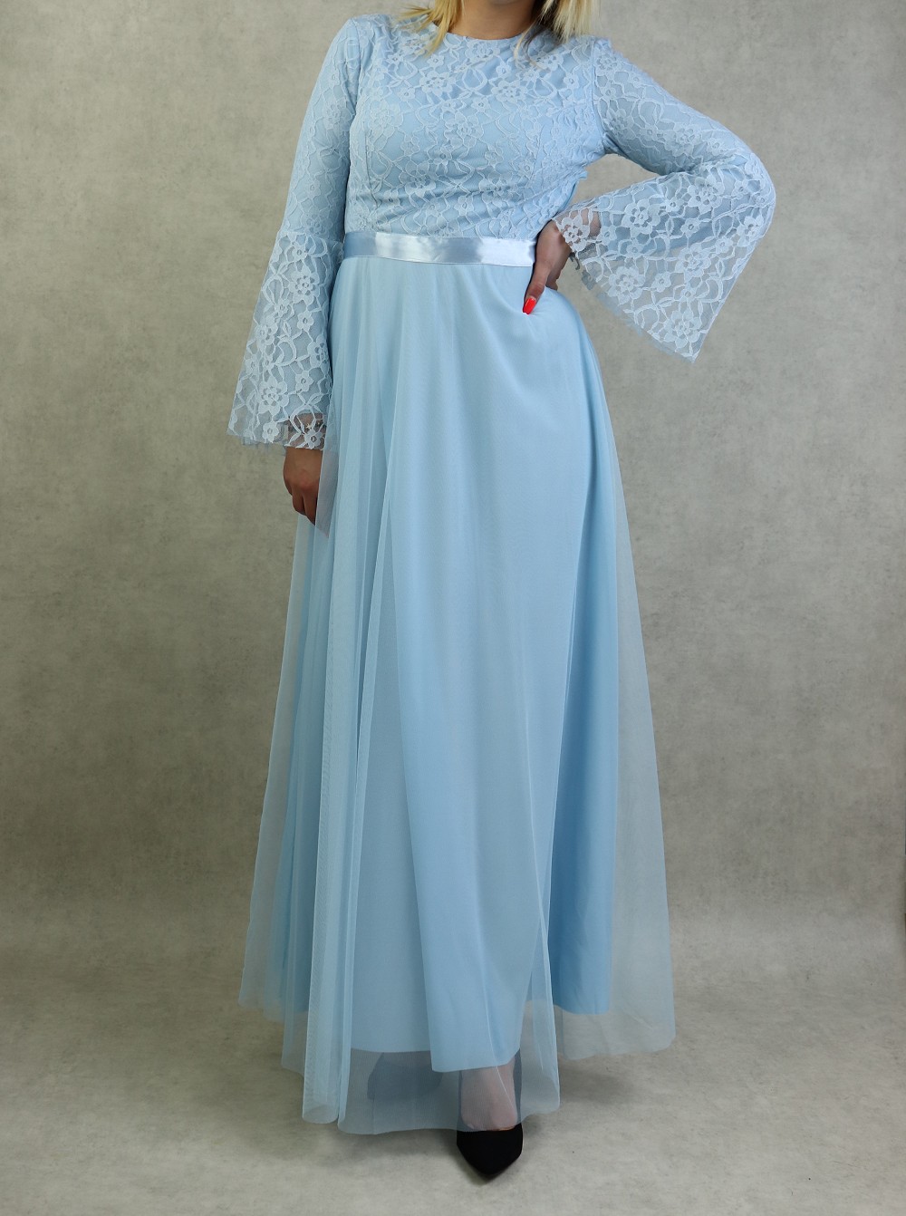 Robe de soirée ou de cérémonie élégante et classe en tulle et dentelle pour femme - Marque Amelis Paris - Couleur bleu ciel Vetement & Accessoire