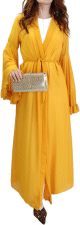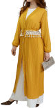Kimono long plissé style oriental avec décorations et strass pour femme - Couleur jaune moutarde - REF. 30688 (32.00 €) - En Promotion à 24.90 €