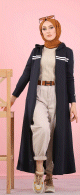 Cardigan Gilet long zippé style hijab sportswear col à capuche pour femme voilée - Couleur noir - REF. 33123 (24.90 €)