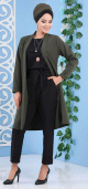 Ensemble décontracté et moderne (Ensemble tunique longue et pantalon assorti pour femme musulmane) - Couleur noir et kaki - REF. 35728 (24.90 €)