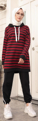 Ensemble décontracté de type sportswear pour femme musulmane - Survêtement 2 pièces à rayures - Couleur bordeaux et noir - REF. 33879 (25.00 €)