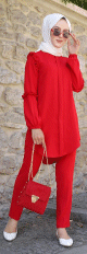 Ensemble femme tunique ample et pantalon (Vetement Modest Fashion) - Couleur Rouge - REF. 33896 (35.00 €)