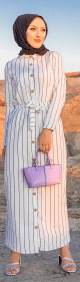 Robe chemise d'été longue à rayures (Vetement hijab chic pour femme) - Couleur blanc et noir - REF. 33923 (25.00 €)