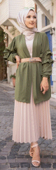 Gilet Veste longue col châle manches à froufrou (Vetement mastour en ligne pour femme voilée) - Couleur Kaki - REF. 33932 (25.00 €)