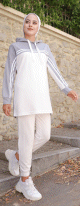 Survêtement femme (Ensemble Urban deux pièces : sweat à capuche et pantalon) - Couleur Blanc et Gris - REF. 34627 (28.00 €)