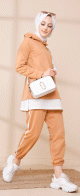 Ensemble décontracté et Survêtement (Hijab Sport pour femme musulmane) - Couleur Biscuit et blanc - REF. 36380 (25.00 €)