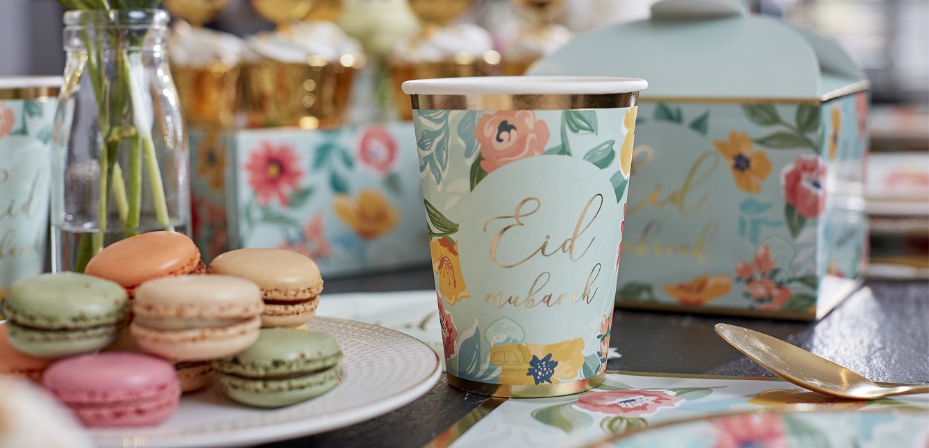 Gobelet Eid Mubarak - Motif tropical : Lot de 6 gobelets pour fête musulmane de l'Aïd - REF. 35512 (3.50 €) - En Promotion à 2.90 €