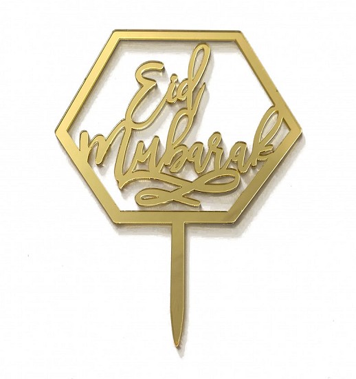 Recevez ce grand pique à gâteau réutilisable avec inscription Eid Mubarak. Couleur dorée.