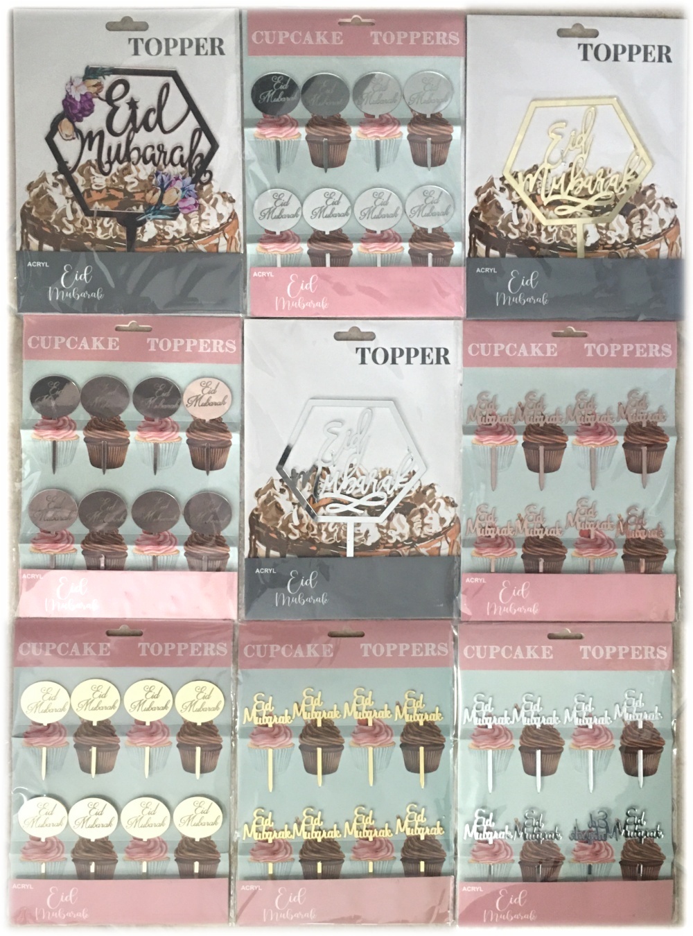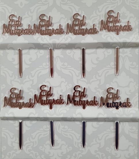 Piques à gâteau inscription Eid Mubarak (pour la fête de l'Aïd) - Couleur rose doré (8 pièces) - REF. 35156 (4.90 €) - En Promotion à 3.50 €