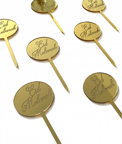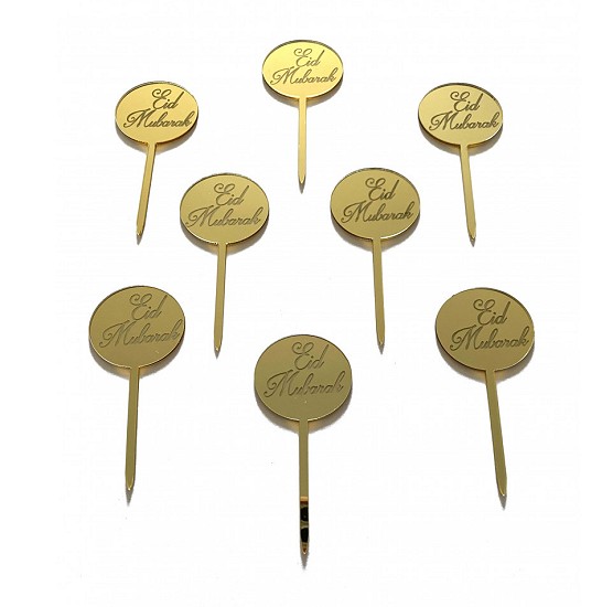 Piques a gateau rond Aid Moubarak - Couleur doree effet miroir (8 pieces) - Eid Mubarak Cake Topper