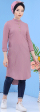 Tunique longue décoration boutons - Couleur vieux rose (Grande taille disponible pour femme) - REF. 30594 (22.90 €) - En Promotion à 19.90 €