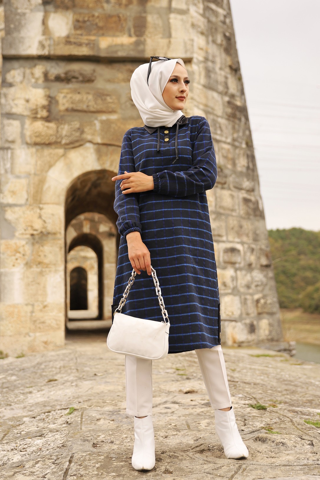 Tunique longue à rayures (Vetement hijab) - Couleur noir et bleu Vetement & Accessoire